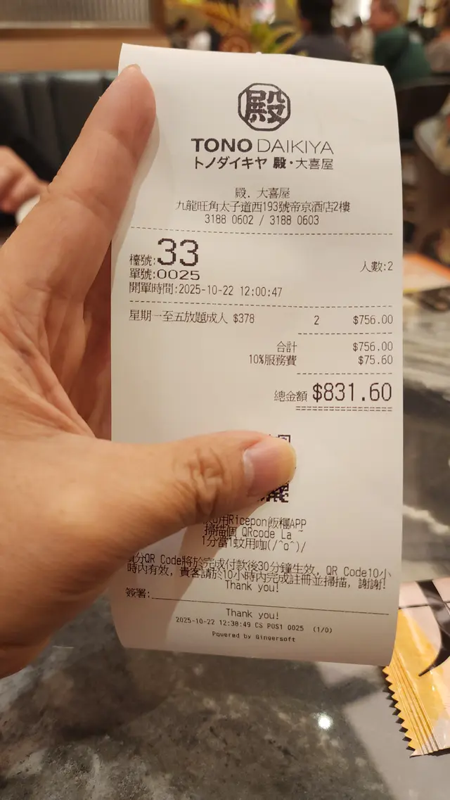 殿·大喜屋 (旺角) 網址: https://s.openrice.com/QrbS0H80C00 地址: 香港旺角太子道西193號帝京酒店2樓 電話: +852 31880602