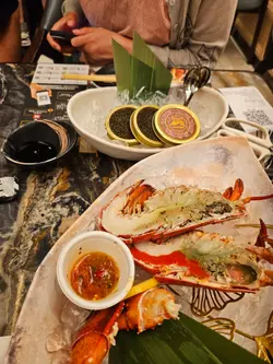 今晚同男朋友食飯 情人節都冇食大餐揀咗放題補返 7點前走每位都係$368好多嘢食 數過電子落單有成80幾款包括刺身、卷物、軍艦、江戶前壽司灸燒壽司、創作料理、串燒、燒物、炸物天婦羅、一品料理、蒸焗鐵板、麵鍋仲有自助區域 主打係燒榴槤、三文魚籽任拎沙律/餐前小食、海鮮水果、甜品飲品1. 刺身拖羅肉質粉嫩 帶有少少油脂紋理表面都立立令反光 入口即化口感柔軟 唔使點咀嚼都吞到海赤蝦肉晶瑩剔透 又好鮮甜有濃烈嘅海洋味道 咬落彈牙爽脆2. 軍艦海膽拖羅鱈魚乾手卷用咗日本海膽、蟹籽鋪喺拖羅蓉上 濃郁甘甜海膽同拖羅油脂香好夾下面放有鱈魚乾片同飯 脆片好似藝術品咁突出味道微鹹做到提鮮作用 整體層次都幾分明紫菜同鱈魚乾脆 海膽同拖羅蓉綿滑 多重口感3. 串燒燒牛舌係厚切牛舌嚟 燒到表面色澤焦糖表面有啲油光 有啲肉汁、唔會好乾少少黑胡椒粉吊味 食落覺得彈牙、嚼勁鹽燒雞軟骨燒到金黃微焦 鹽粒唔會過多過鹹少鹽吊出雞軟骨嘅原味 脆中帶韌、超有咬口鹽燒泰國仙草蝦殼紅艷得嚟唔會燶邊剝殼後蝦肉鮮甜 肉質緊實彈牙4. 一品料理酥炸生蠔外殼炸到金黃酥脆 但唔油膩生蠔都幾新鮮飽滿 入面直頭爆漿皇帝蟹濃湯伊麵 細份唔會嘥位蟹肉比想像中大件 一啖入口係好滿足伊麵吸晒濃郁蟹湯精華 口感滑溜5. 蒸焗鐵板鵝肝厚多士鵝肝豐厚油亮、焦香濃郁多士煎到金黃、吸晒油後香脆唔膩甜甜哋嘅醬汁係靈魂 口感外脆內軟金蒜粉絲蒸扇貝都幾新鮮大粒上面舖有粉絲 粉絲食落爽滑唔硬 吸晒醬汁精華好正 面頭多蒜味濃極上椰皇燕窩燉蛋白用咗椰殼盛載蛋白滑嫩無瑕 有透明燕窩喺上面點綴少少椰香清甜 整體食落口感滑順6. 麵鍋清酒煮鮮蜆蜆殼好似打開咗嘅花瓣肉質嫩滑鮮甜 湯汁清醇 彌漫清酒香氣鮑魚皇帝蟹黃粥嘅色澤比較金黃可能加咗蟹黃關係 粥底綿密 感覺暖胃…查看更多