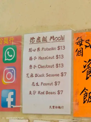 ‧₊˚ ୨୧ ˚₊‧ ⋆𐙚₊˚⊹ ྀི ⋆౨ৎ˚⟡˖ ࣪ 𓈒 ˖ ࣪ 𝜗𝜚‧₊˚ ୨୧ ˚₊‧ ⋆𐙚₊˚⊹ ྀི ⋆౨ৎ˚位於荃灣嘅民豐粉麵行,呢間老字號開業超過60年,係小編由細食到大,主打賣糯米糍、韭菜煎餅,見到有新出嘅開心果味糯米糍,即刻心郁郁買嚟試吓( ⸝⸝•ᴗ•⸝⸝ )੭⁾⁾✌🏻✨花生糯米糍 $7推薦度:9.3/10呢款喺心中嘅第一位🥇糯米皮好薄,皮薄餡多,花生餡加入咗砂糖,花生粒炒得好香,餡料份量好多,一啖咬落去好多花生餡,超滿足!!!✨✨黑芝麻糯米糍 $7推薦度:9.1/10香濃芝麻味,芝麻餡加入咗砂糖,呢款會對比花生味再甜啲,餡料份量同樣好多,每粒都好飽滿🤏🏻正(๑❛︎ڡ❛︎๑)✨開心果糯米糍 $13推薦度:8.4/10糯米皮煙煙韌韌,開心果碎加入咗砂糖,同樣皮薄餡多,但開心果味相對花生及芝麻味冇咁濃郁,而且會甜啲🥹💡溫馨提示: 買五個先會有盒裝住~食唔曬記住放雪櫃,室溫放到第二日好易變壞!!女小編👧🏻:味道:9.1/10服務:8.7/10性價比:9.5/10📍民豐粉麵行 (荃灣)荃灣荃灣街市街35號地舖‧₊˚ ୨୧ ˚₊‧ ⋆𐙚₊˚⊹ ྀི ⋆౨ৎ˚⟡˖ ࣪ 𓈒 ˖ ࣪ 𝜗𝜚‧₊˚ ୨୧ ˚₊‧ ⋆𐙚₊˚⊹ ྀི ⋆౨ৎ˚…查看更多