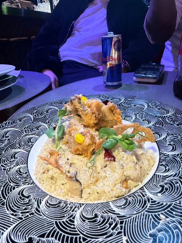 蘭桂芳有懷舊特色酒吧😍實在太吸引了吧‼️餐廳名字已經非常吸引我,真係充滿港式風味!其實餐廳嘅佈置都非常特別-係懷舊港式主題🥰係打卡嘅好地方💜講吓今次嘅食物💁🏻♀️叫咗個黑松露奶油燉飯配炸蠔同紅蝦明太子奶油麵🍝 黑松露奶油燉飯有非常濃郁既黑松露,滿口都非常Creamy👍又唔會太濕,飯粒都分明,口感剛剛好!炸蠔新鮮,唔會過熟👍紅蝦明太子奶油麵都非常Creamy,而且滿滿明太子,非常慷慨☺️紅蝦都有點爽口🦐除咗主菜,我同朋友重點多咗一兩款小食,包括鹹蛋黃雞翼同炸蝦🤤鹹蛋黃非常濃郁,雞翼超級大隻‼️雞肉非常嫩滑👍值得推介既小食🥰 炸蝦亦非常爽口大隻!我哋仲叫咗兩杯Fruit Punch 🍹都真係好大杯☺️味道亦調校得好好,唔會太甜!推介🥰餐廳仲有一個私人房間可以同朋友一齊相聚!絕對係一班朋友聚會嘅好地方!😍而且仲有Shisa 食!都真係幾吸引架👍…查看更多