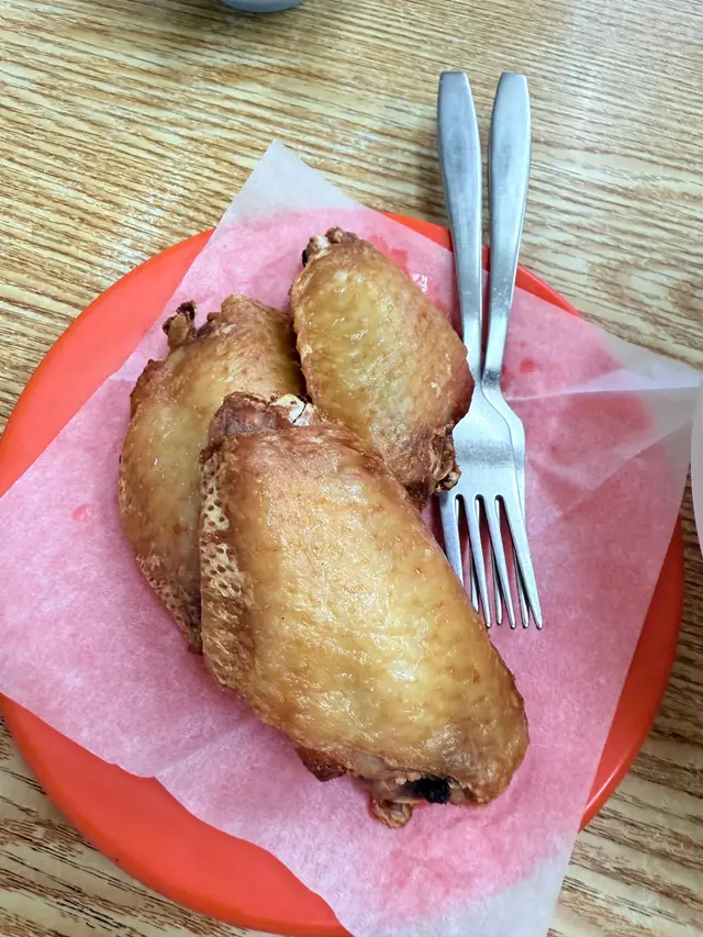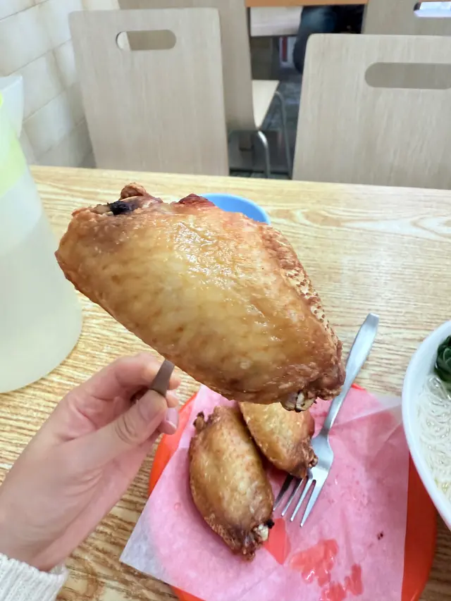 大澳蝦膏炒飯,一上菜已經聞到好香嘅蝦膏味,炒飯粒粒分明,食落唔會太鹹,蝦膏味慢慢滲出,炒飯份量好大碟,夠兩個人食~ 炒飯入面有生菜絲、叉燒、蛋、蔥粒、蝦仁,十分香口,鑊氣十足!好好食!好有驚喜~另外,點了一個雞翼米粉,份量都係超級多,係平時茶餐廳嘅一倍!炸雞翼皮好脆,食落口唔會好油膩,外脆內軟,入面唔會乾身,隻隻雞翼都脹卜卜,好飽滿。米粉食落有麻油味。店員態度親切有禮~枱有水壺,可以自由浸水飲注意:店內有最低消費費,每人$40查看更多