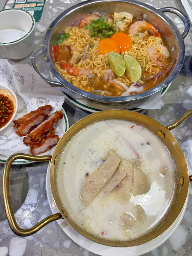 -泰式雞飯之選✨-🔖自選泰式船麵💰50如果揀呢個嘅話,麵底、湯底同埋配料都可以自由選擇!湯底方面我哋揀咗金邊粉,而湯底就揀咗牛肉湯~最後配料方面就揀咗雞絲同埋牛丸🤩牛肉湯濃郁帶甜,雞絲唔會好乾身,而牛丸就彈牙juicy😋份量嚟講都好足料,夠抵食!💫推薦指數: 8.5/10🔖水門雙拼雞飯💰56鍾意食雞又貪心嘅你,就可以試吓呢一款雙拼雞飯,咁就可以一次過試到海南雞同埋炸雞😌雞肉夠嫩滑,而炸雞就夠晒卜卜脆,加埋油飯,好滿足啊🤓💫推薦指數: 9/10🔖胡椒單骨雞翼💰44相比起原隻嘅雞翼,我就更加編好單骨雞翼😆貪佢食起上嚟比較方便😙雞翼炸到香脆,加上胡椒粉,微辣得嚟又夠惹味😋💫推薦指數: 8.5/10🔖牛肉串燒💰14/串主食方面都係嗌咗雞肉,所以串燒方面我哋就揀咗牛肉🐮即叫即燒嘅串燒上枱嘅時候夠晒熱辣辣,而且食落去一啲都唔嚡!想再食得濃味啲就可以點埋個沙嗲醬一齊食🤗💫推薦指數: 8/10🔖芒果糯米飯💰58講起泰國嘢食,又點少得芒果糯米飯🥭糯米飯口感煙靭,加上香甜嘅芒果,為晚餐畫上一個完美嘅句號🤓💫推薦指數: 9/10🔖蘋果雪梨水💰22估唔到食泰國嘢都會有蘋果雪梨水😝見到當然即刻要嗌返一杯🤓蘋果加雪梨,飲落去夠哂滋潤啊🍎🍐💫推薦指數: 8/10-📌水門雞飯📍尖沙咀厚福街3號華博商業大廈地下2-3號舖…查看更多