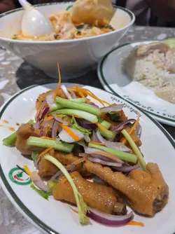 成日路過水門雞飯嘅分店都以為剩係得雞飯食,今日仔細睇Menu先知原來仲有好多其他泰式嘢食,咖喱、船麵、湯、串燒等樣樣齊。🍽️足料椰汁雞煲 $68椰汁雞煲係呢排嘅新品推介,$68跟埋飲品好抵食。雞煲內雞件唔少,肉質嫩滑而且入味。椰汁湯底帶有濃郁嘅奶油香氣,香料及菇亦好足料唔馬虎,忍唔住一啖又一啖繼續飲,如果跟埋飯會更好。🍽️泰式炒鳳尾蝦金邊粉 $78炒金邊粉一直都係我好鍾意食嘅泰國菜~金邊粉色澤好靚,配菜有豆皮、雞、芽菜、鳳尾蝦等。鳳尾蝦幾大隻,清脆爽口。金邊粉集酸甜鹹辣於一身,辣度唔會好辣,整體偏甜,加上青檸汁好開胃惹味。🍽️泰式無骨豬手(例) +$30豬皮部分近乎入口即溶,豬手肉非常軟糯入味,滷水鹹香上帶啲香草味,甜甜哋,無骨好容易進食。成個豬手啖啖肉好開胃、爽口。🍹泰式奶茶 泰式奶茶有濃郁嘅茶香、香料味、甜味同奶香,層次豐富。整體風味濃郁而唔會過甜。🍹菠蘿冰 $29沙冰打得好勻循,飲落冇大碎冰粒。菠蘿嘅酸甜好適合喺食完辣嘢後飲,好解渴。抵食!…查看更多