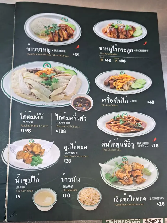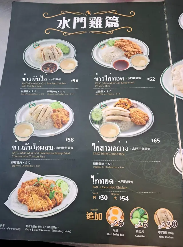 Khao Mun Gai Poached Chicken with Rice, Khao Mun Gai Poached & Deep Fried Chicken with Chicken Rice, Stir-fried Basil & Pork with Rice