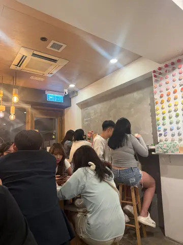 早幾日上網見到有人影左一碗幾核突嘅冰圖,再寫埋其貌不揚,但味道好好食嘅限定粟米冰。驚死食唔到嘅我趁今日即刻放工搭過去北角一探究竟🤣🤣間冰店好難搵,完全無可能行街經過,行到街尾,走過車房,再行去另一邊街先搵到鋪頭細細,但係裝飾幾別緻,有一塊裝滿唔同粉色系嘅磁石貼,內裡都比較清涼。首當其衝即刻order左個9/10月限定粟米冰(內心其實好想食埋社交平台限定香蕉朱古力冰,但係自己一個,真係食唔晒),再叫左個焦糖餅乾銅鑼燒(有平)。等左一陣,叫檯號,就可以出去拎啦😍😍個冰唔會話超級大個,但足夠一個人食晒,冰面有層黃色厚身cream再加粒粒粟米,食落去!!!大癲!超濃粟米味,完全唔淡,同平時飲粟米忌廉湯係兩個唔同層次,佢中間無其他配料去襯托個粟米冰,但係貌似用岩鹽芝士整嘅忌廉奶蓋已經完全同個粟米融合!味道超夾,甜中帶鹹令到成個mixture 昇華,痴左線🥹🥹仲有兜小蜂蜜醬油,我倒落冰中間,蜂蜜醬油嘅鹹甜味同冰嘅粟米味,又中和出另一種口味🥳🥳超幸福,雖然去到底有冰唔係棉花狀,但完全無損我繼續飲,係,我飲埋🙂↕️焦糖餅乾銅鑼燒,銅鑼燒質感綿密鬆軟,焦糖餅乾唔會話死甜,加左d 白色嘅東東(唔記得左咩黎,成個腦都係得粟米冰)令到d餅乾可以黏住銅鑼燒皮唔會一路咬,一路跌。銅鑼燒其實都好好食,但粟米冰太驚艷,完全無得比🤭🤭
