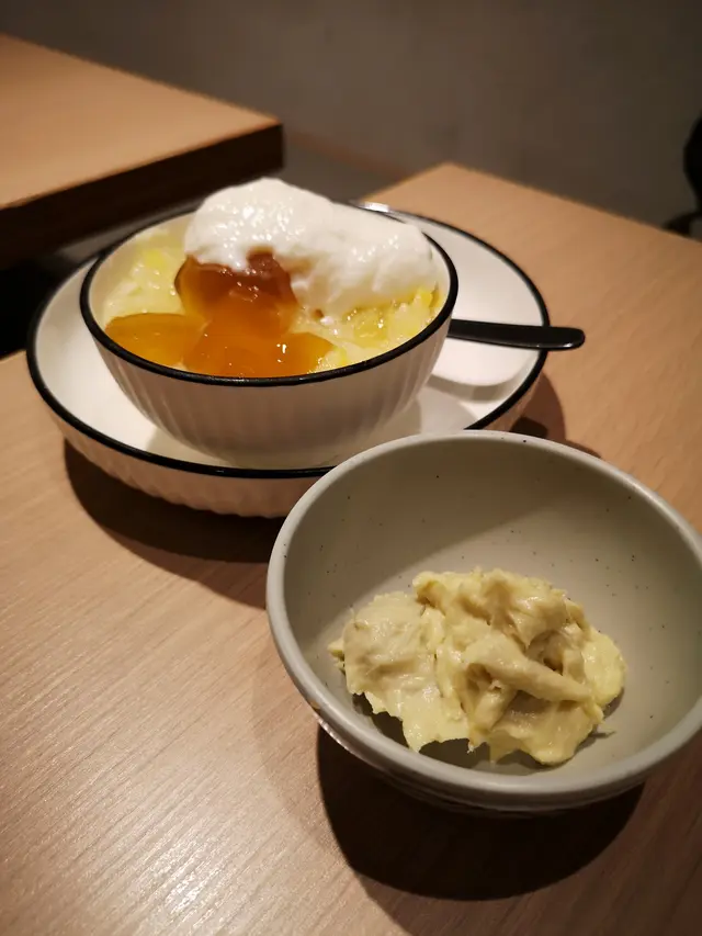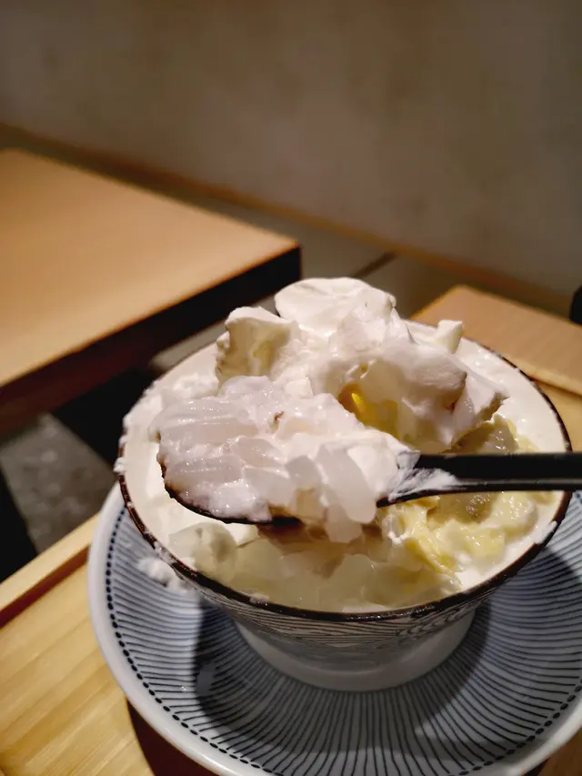 創意十足嘅飲品,綠茶底清香撲鼻,帶有青提嘅微酸果味,甜度適中,飲落去清爽解渴~加入脆脆珠同青提粒,啖啖都係卜卜脆嘅口感🤣💛D24榴槤麻糬凍飲 ($52)