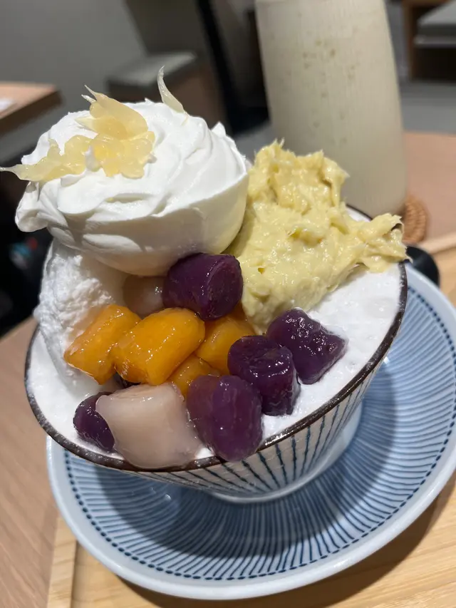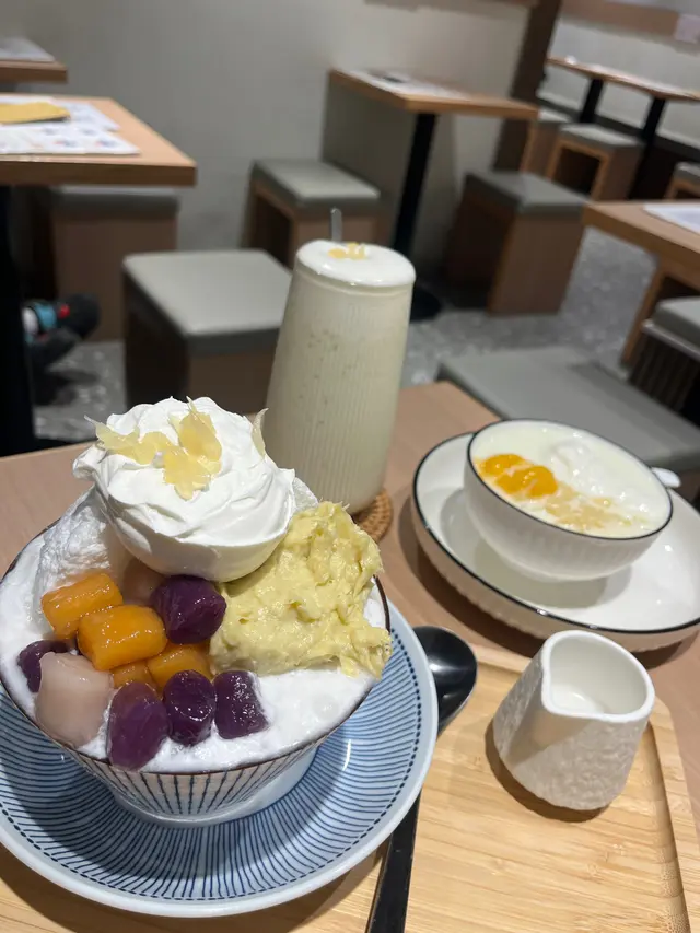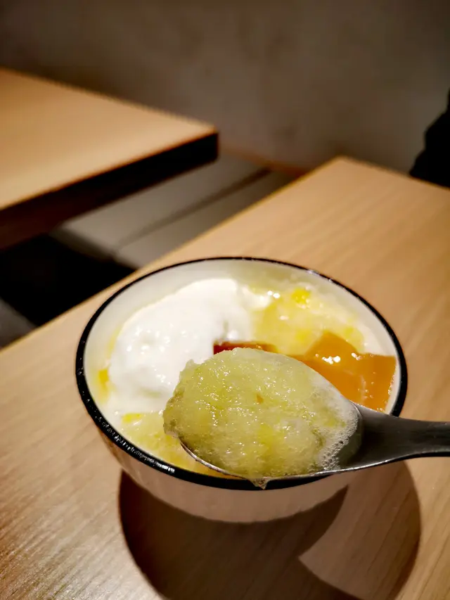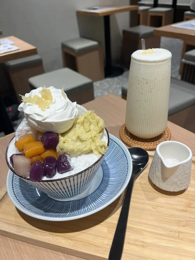 楊枝甘露系列係店內嘅招牌!經典嘅楊枝甘露,芒果香濃郁,椰奶順滑,配上西米嘅Q彈口感,甜而不膩😍特別加入軟糯麻糬,咬落去黏黏地又充滿嚼勁,完美提升整體層次🤩清新嘅芒果味同麻糬嘅口感相輔相成,啖啖麻糬好幸福!💚青提炒冰 ($56)