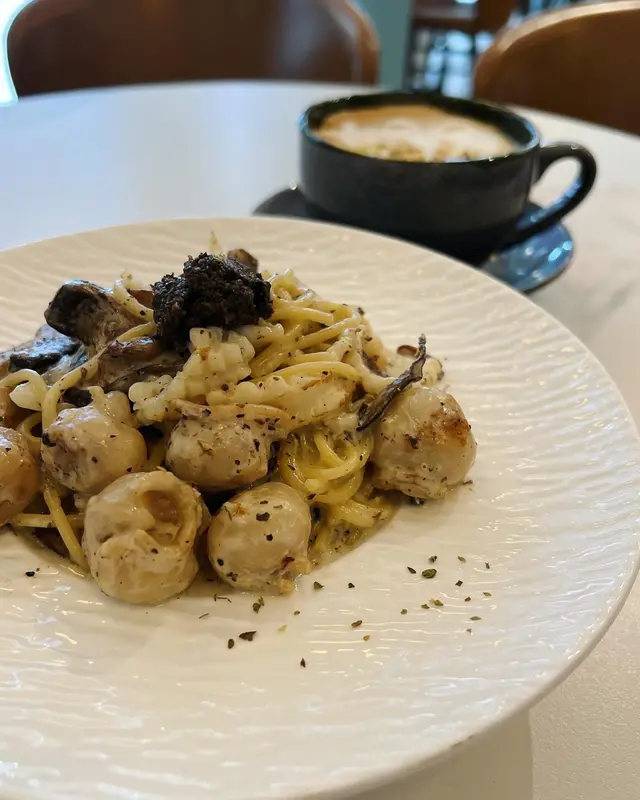 餐廳係一間積極響應聯合國永續發展目標嘅企業~會幫年輕咖啡師創業 幫家庭主婦創造收入來源😁同時都會提倡市民環保意識 不時會喺餐廳舉辦環保相關嘅活動同工作坊亦都會回收咖啡渣 真正為地球減費出一分力🌏特別之處係消費三次會送一隻環保咖啡杯💚個杯由35%咖啡渣同穀物製成 BPA Free 遇熱都唔會產生有害氣體㗎~餐廳嘅裝修係行花草路線🌸設有梳化打卡位 仲有留言區俾食客寫吓嘢💞食物方面提供正常同素食選項 飲品就有多款咖啡選擇~-👩🏻🍳Idiots翻兜之選❤️🔥青醬蜆肉意粉青醬好香 食到有好濃嘅香草味🫶🏻仲鋪滿晒好多蜆肉😻❤️🔥薯條山有茄醬 泰式辣醬同千島醬~側邊睇落真係似座山⛰幼薯炸得金黃 睇得出餐廳有換油亦都無油溢味 食落係乾身😋炸起熱辣辣 外層都脆 唔會好硬🤤❤️🔥紅棗鮮奶比較少見嘅item~除咗有紅棗 仲有桂圓同薑甜甜哋又有啲咬口🤤養生之人可以試吓!❤️🔥朱古力乳酪雪糕大大杯 食落好滿足夠晒飽🥰乳酪雪糕偏甜 有朱古力粉 但朱古力味唔算好突出入面仲有啲餅乾同朱古力粒 配料都幾豐富!-👩🏻🍳Idiots食過就算⚡️特色蒜香辣意粉第一啖食落好酸 後勁就開始辣🔥仲加咗啲黑胡椒 加埋就有少少重口味😆配料有蘑菇同青椒~⚡️ 抹茶鮮奶 (熱)有好簡約嘅心心拉花🫶🏻唔甜唔苦 仲飲到少少抹茶粉~…查看更多