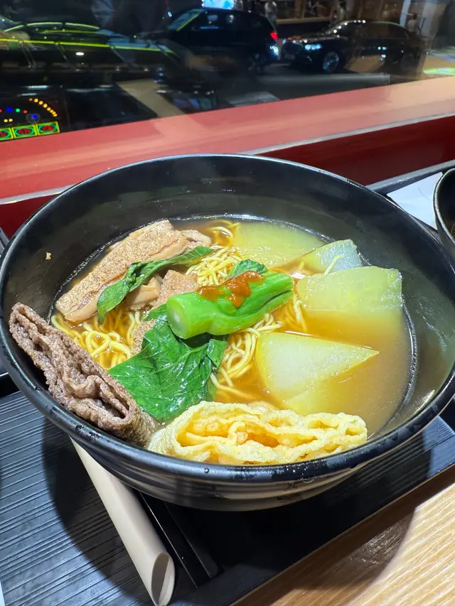 尖沙咀多遊客,好多都想試到香港地道車仔麵,永年係元朗創立,依傢連尖沙咀都有分店。永年車仔麵就好受歡迎,晚市排左一陣隊就入座自選麵(出前一丁配雞翼尖 醬油流心蛋 魚蛋(辣)芝士腸 墨魚蝦卷)微咖喱辣出前一丁夠爽,配上鮮嫩的雞翼尖、醬油流心蛋,濃郁的魚蛋(辣)和香滑的芝士腸,再加上墨魚蝦卷的海鮮風味。稍微帶點咖喱辣自選麵(幼麵配 蘿蔔 牛肚 炸腐竹)微咖喱辣另一碗幼麵選擇了清爽的配料,包括脆甜的蘿蔔、嫩滑的牛肚和炸至金黃酥脆的腐竹小食:滷水雞翼滷水雞翼好入味,肉質鮮嫩菠蘿冰菠蘿冰的清新甘甜,搭配紅豆奶茶冰甜甜嘅紅豆配上香濃奶茶…查看更多