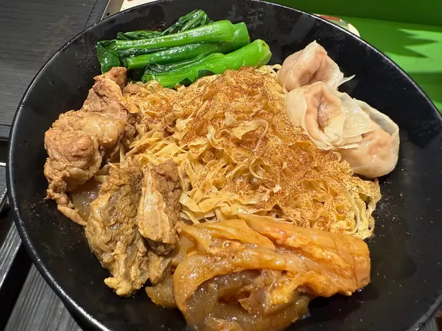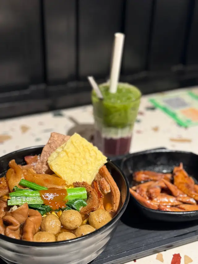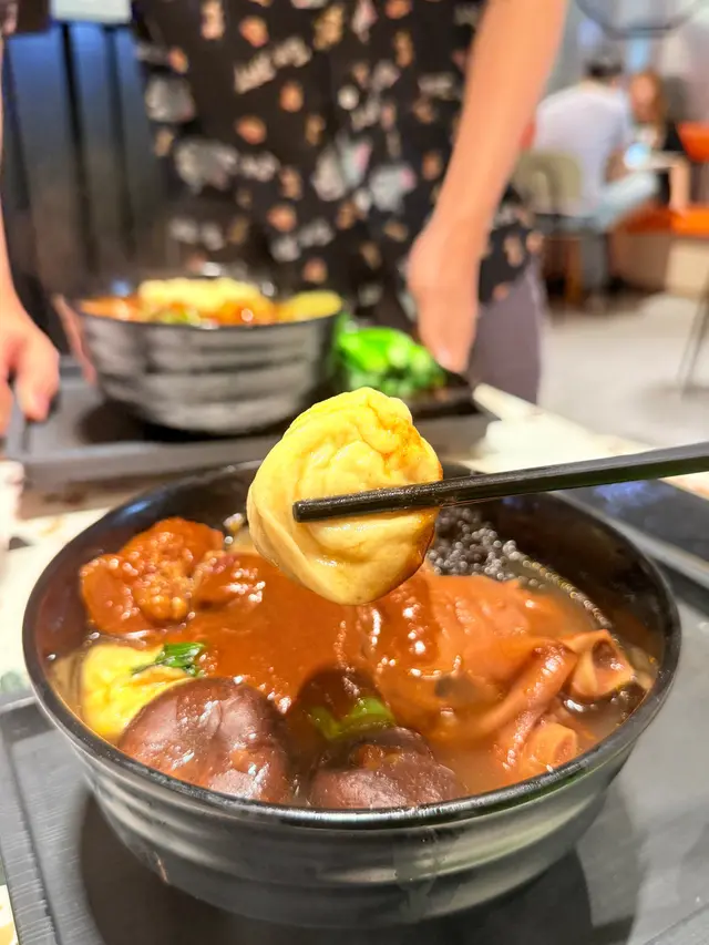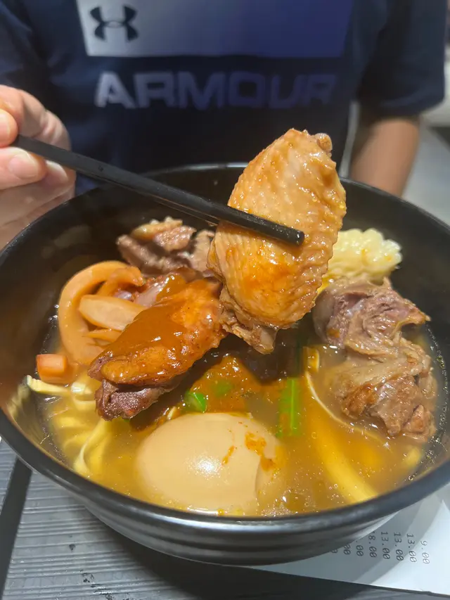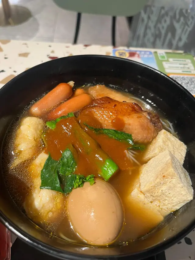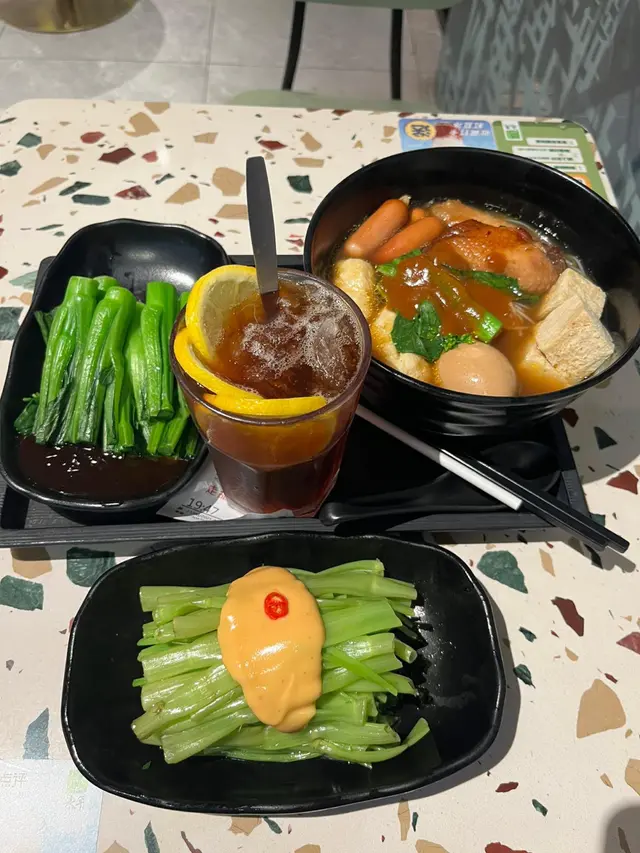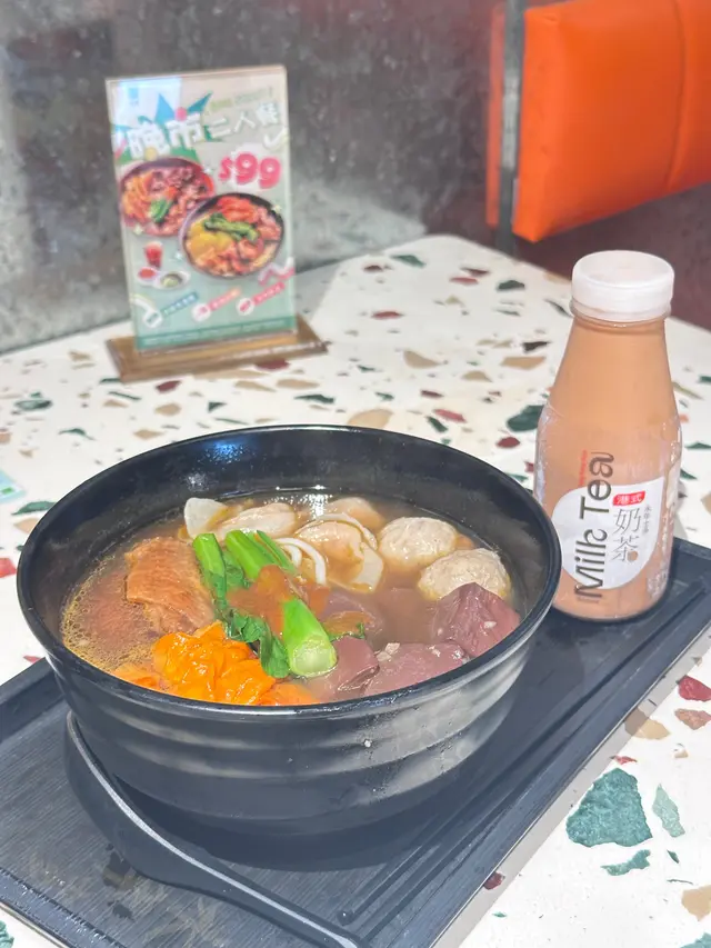 趕時間下場活動,都係食碗麵比較好。發現逸東酒店,依家都有間永年,元朗總店未試過,不過過去試下同尖沙咀有咩分別都好,一去到除左經典,都發現有新嘢。等緊嘅時候,欣賞下呢度裝修車仔餐牌坤記雲吞牛腩撈麵 $66 (竹昇麵) 微咖喱辣 食車仔麵,原來都可以配生麵。永年同坤記竹昇麵合作,車仔麵店都食到雲吞撈麵。麵爽滑彈牙,雲吞皮薄餡靚,豬肉配一隻大蝦。加上永年嘅配方,香甜嘅豬腸汁,同好辣嘅咖哩汁,加少少已經夠,完全係車仔麵風味。牛腩夠腍,而蘿蔔最有驚喜,煮得入味無渣,冰糖之後都有少少咖哩辣味,調味好特別。炸腐竹 +$9黑白腐竹都非常酥脆,係有火鍋響鈴卷嘅感覺,如果湯底再熱啲,可能更有層次啦!大碗麵套餐 走辣 $76出前一丁 +$2 =78大碗麵真係好多料,豬腸、陳皮魚蛋、蘿蔔、豬紅 、豬皮 、雞翼、雞翼尖、 魷魚、紅腸同兩條菜心,出名嘅配料都試齊,每樣食材都好入味。麵底唔要平時嘅油麵,試下出前一丁,佢個麻油湯底配滷水汁嘅香甜,增加左唔少層次,竟然幾夾!腐乳通菜 +$22通菜爽脆冇渣,加咗腐乳醬之後,口感更滑。配辣椒片令味道有層次,不過記得小心辣椒籽,突然咬到就會好辣!🌶️鹵水雞翼 $28 滷水汁帶甜味,雞翼軟滑入味,但骨肉未完全分離,肉質少少緊實。整體感覺唔錯,有層次。🍗Sun檸樂(罐) $20原來係罐裝原味可樂,配黃色西檸,不過檸檬幾大片,食左咁多肉都可以解膩。樽仔奶茶 (凍) +$6樽仔奶茶茶味夠濃,都夠滑香滑,無冰粒避免淡味,不過奶茶本身帶少少冰沙,彌補冰凍感,感覺特別新穎。🧊總計 $229…查看更多