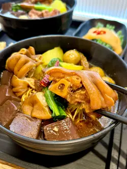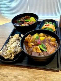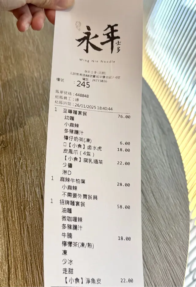 車仔麵配料選擇多,招牌咖哩汁同麻辣汁都分咗辣度。有得揀加豬腸汁,車仔麵嚟講係比較少見!招牌樽仔奶茶香滑,豬腸好肥美!!牛腩炆得腍腍哋又唔會散口,鹵水虎皮鳳爪皮入味而唔會軟泡泡,腐乳通菜可以揀多醬或少醬。至尊麵套餐 $76幼麵、小麻辣、多豬腸汁樽仔奶茶 (凍) +$6鹵水虎皮鳳爪 (4隻) +$18腐乳通菜 +$22少醬、淋D麻辣牛柏葉 $28小麻辣招牌麵套餐 $58油麵、微咖喱辣、多豬腸汁凍檸檬茶 +$0牛腩 +$18淨魚皮 +$22_______________永年士多 (元朗)元朗教育路88號寶城洋樓地下2-4號舖_______________…查看更多
