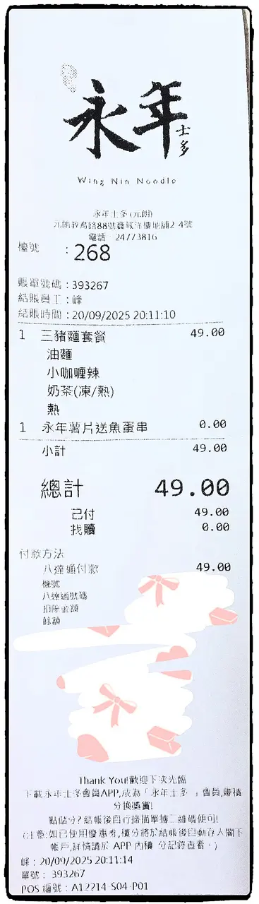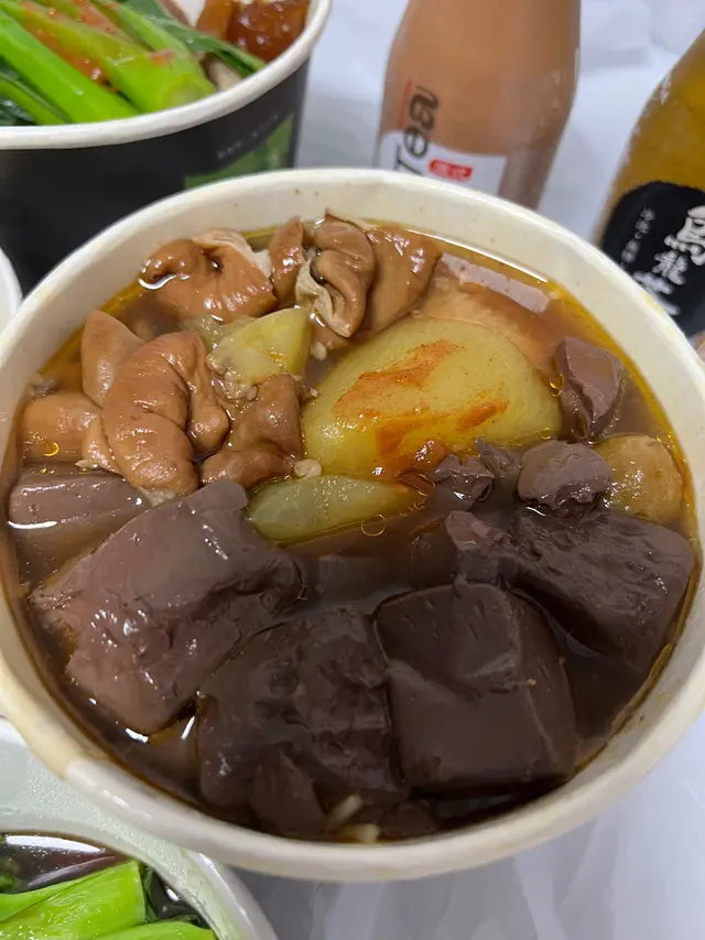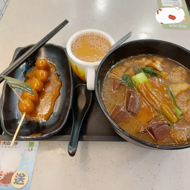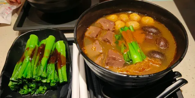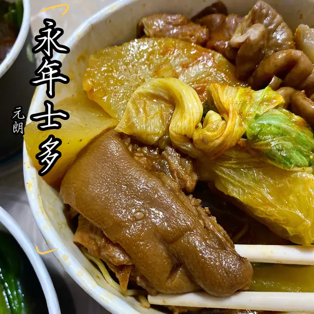 車仔麵配料選擇多,招牌咖哩汁同麻辣汁都分咗辣度。有得揀加豬腸汁,車仔麵嚟講係比較少見!招牌樽仔奶茶香滑,豬腸好肥美!!牛腩炆得腍腍哋又唔會散口,鹵水虎皮鳳爪皮入味而唔會軟泡泡,腐乳通菜可以揀多醬或少醬。至尊麵套餐 $76幼麵、小麻辣、多豬腸汁樽仔奶茶 (凍) +$6鹵水虎皮鳳爪 (4隻) +$18腐乳通菜 +$22少醬、淋D麻辣牛柏葉 $28小麻辣招牌麵套餐 $58油麵、微咖喱辣、多豬腸汁凍檸檬茶 +$0牛腩 +$18淨魚皮 +$22_______________永年士多 (元朗)元朗教育路88號寶城洋樓地下2-4號舖_______________…查看更多