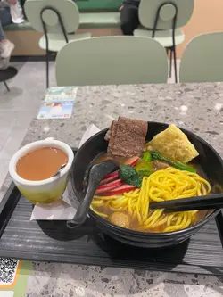 行過地鐵俾佢個隆重開幕,加$1多兩餸嘅廣告優惠吸引。呢間車仔麵店開咗咁多間分店,果然越做越大。以前食開元朗舊舖,其實都覺得好好食。咖喱汁係靈魂所在。本身$1加多2餸,性價比已經高咗很多,再加上下午茶時段再送埋飲品。抵🤭$38兩餸+$1餸的份量好足料雞翼三隻魚皮餃三粒豬腸都好多件炸腐竹兩大塊再配上靈魂咖喱汁,正👍🏽唯一不足,是幼面。份量雖多,但太淋,唔彈牙。或者竹星面更加彈牙,但係要另外加錢我就覺得唔太抵。因為自己早排喺粉面檔食幼麵,彈牙好多,一比之下,這次錯點幼面🫣而家做緊個優惠$39/4個餸,下午茶再包飲品。其實都好吸引。趁優惠期間,我相信我都會再次光顧,下次唯有選擇另一個面底😅…查看更多