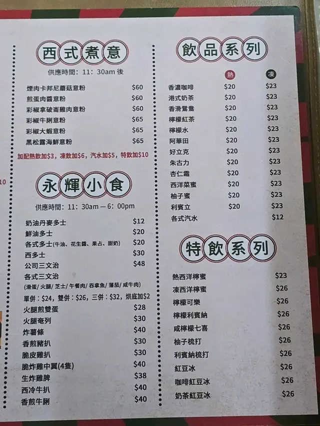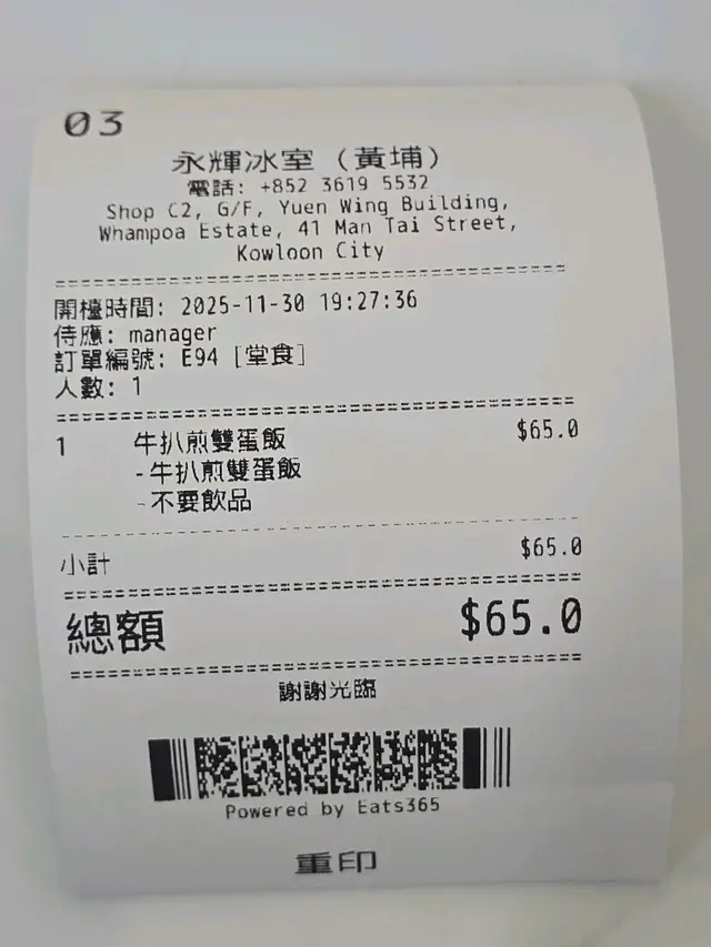永輝冰室 (紅磡) 網址: https://s.openrice.com/QrbS0iXuF00 地址: 香港紅磡民泰街41號地舖 電話: +852 36195532