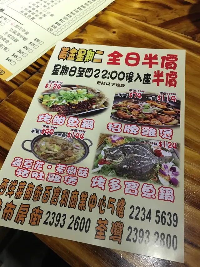 汀汀烤活魚 (旺角) 網址: https://s.openrice.com/QrbS0Bfi600 地址: 香港旺角西洋菜南街1A-1K百寶利商業中心5樓 電話: +852 22345639