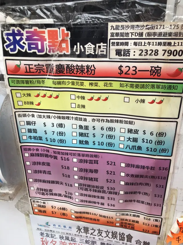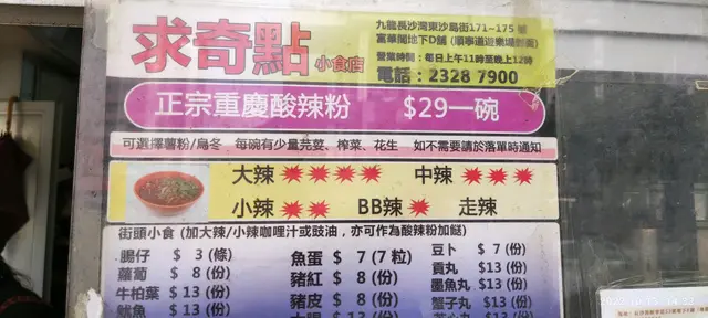 其實一D都吾求奇咖好耐無食車仔麵的餸,系長沙灣哩間有D特別,吾系普通車仔麵底,系蕃薯麵。下午茶時間無人買,老闆幾好人,本來平時都只賣酸辣粉,無齋蕃薯麵賣,但今日我買左好多餸,只叫了齋麵。蕃薯麵($8蚊)真系好鬼滑,早知道買大碗D.豬腸系排第二位好食,好滑,吾靱,無臭味。豬皮好爽,但吾好地方系煮的時候已經同魚蛋一起煮同落左咖喱,都有小小辣。牛百頁同豬紅正常味道,但算吾錯。魚蛋系比較差的一種,無乜魚味,吾爽。另外買左一碗勁辣牛百頁同魚蛋比印尼姐姐,佢都話超辣同國音,食到流鼻水。…查看更多