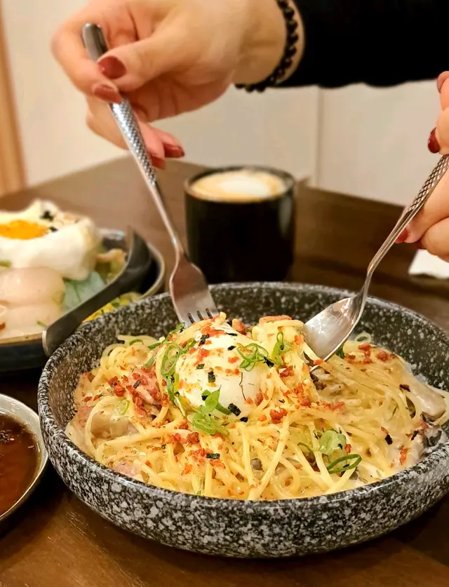 年前曾經去過 shio 挑戰刺身飯發現自己好像只能是熱葷控哈哈最近 shio 革新了餐牌 新增了好多和風熟食!還有人氣甜品放題 到訪的心秒速上升餐廳格局沒有大變化 都是吧台跟 tatami 的簡約明亮配置餐點由最初主打刺身丼物 變成富創意的熱丼飯/意粉為主品項與姊妹店 umi 和 undici 又有點不一樣但 shio 都有星期一至四限定的甜品放題!惠顧一款主食/兩款小食 升級+$48/+$66套餐 就可再加+$1配甜品放題 全日供應𓋪 野菌燒汁漢堡蛋包飯𓋪 椒鹽鮮魷避風塘意粉濃郁帶甜的燒汁配上柔滑的蛋 不可能不好吃topping 厚厚的漢堡扒烤得微焦 整體層次富富椒鹽鮮魷也能配搭意粉 很有新意耶鮮魷爆香整體帶鹹香 配彈牙意粉跟蜆肉 微辣又惹味 充滿香港特色的一款啊以上主食加 $66 有甜品 飲品跟沙律前菜𓋪 戀人朱古力 (熱)𓋪 焦糖脆脆蜂蜜啡啡朱古力賣相像是冰的哈哈 不過是濃厚的熱朱古力 香甜幼滑甘香咖啡上面有大塊的焦糖蜂蜜脆脆增加不少香甜氣息𓎾 $𝟷 甜品放題重頭戲當然是這個超划算的 $1 甜品放題當天有超多款甜品選擇甘甜的抹茶芝士蛋糕 香氣十足的伯爵茶蛋糕酸甜輕盈的草莓卷蛋等等還有好幾款餐牌上沒有列出的是日款式煙軔控很愛三色蕨餅友人則很喜歡泡芙的多重口感主食革新又變得更喜歡了 ~感覺之後會再去安可呢!…查看更多