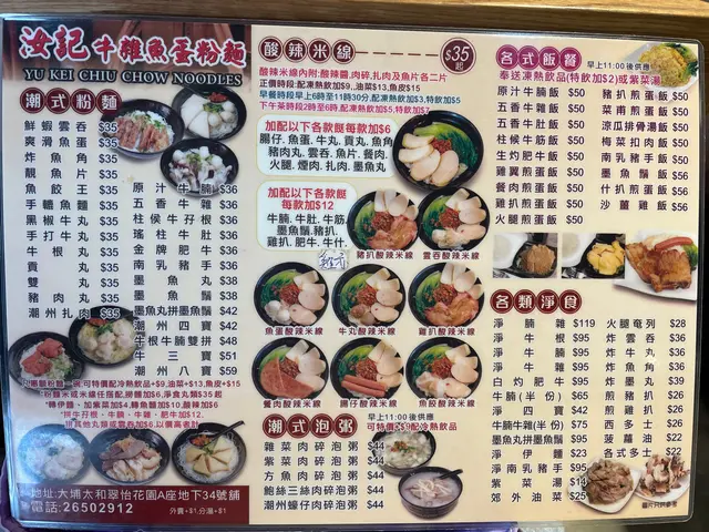 汝記牛雜魚蛋粉麵 (大埔) 網址: https://s.openrice.com/QrbS0zec600 地址: 香港大埔翠怡街3號翠怡花園A座地下34號舖 電話: +852 26502912