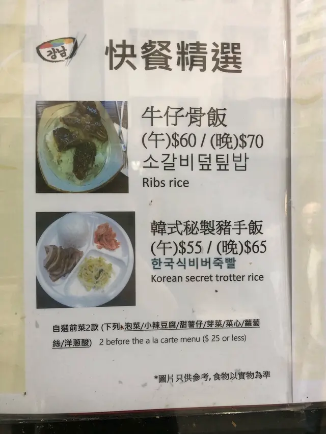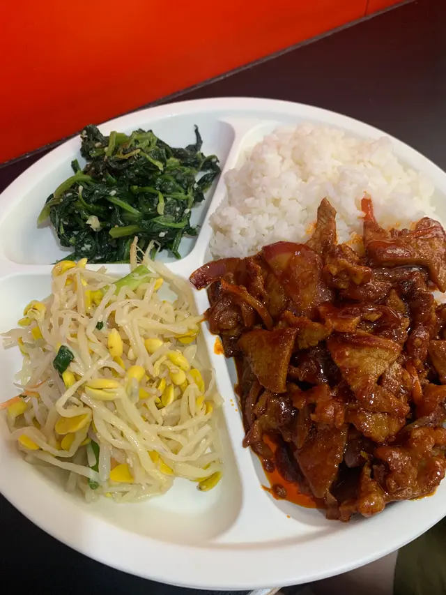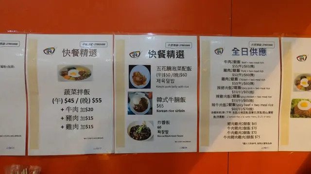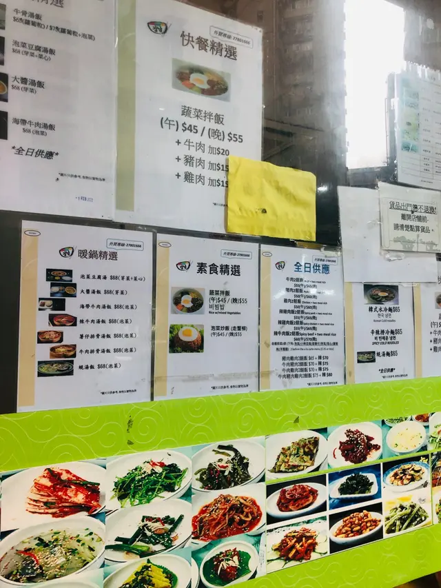 基本就係豬肉/ 牛肉/ 雞肉 2 餸飯, (辣豬肉/ 牛肉/ 雞肉 2 餸飯) 即叫即煮, 再加上佢既前菜, 可以揀2款, 鐘意健康飯盒既就非常之岩啦!! 除左以上既野, 仲有傳統, 泡菜炒飯呀, 紫菜包飯, 泡菜豆腐湯(有白飯跟), 牛肉排骨湯飯, 泡菜公仔面...etc…查看更多