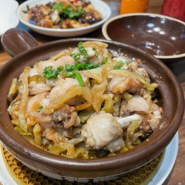 今次揀咗近窗位,望住街景食煲仔飯特別開胃~店員手腳好快,轉頭就送上熱辣辣嘅煲仔飯,揭蓋嗰陣「滋滋」聲同香味一齊衝上嚟,仲有啲白煙飄出嚟,視覺效果滿分📸!▶️榨菜田雞煲仔飯 👍🏻👍🏻👍🏻👍🏻 田雞腿肉滑到似溜滑梯,咬落去仲有少少彈牙🦵~榨菜切到幼絲咁鹹香爽脆,撈埋啲飯焦一齊食,脆卜卜又帶油香,個煲仔火候控制得啱啱好🔥!不過飯量對男仔可能爭少少,女仔就啱啱好。總結今次二刷體驗:環境keep到乾淨舒服🧹,自然光同木系裝修令人坐得耐都唔侷促🌱。食物水準穩定無跌watt,特別係田雞處理得夠嫩無雪藏味👌🏻。呢度無花巧gimmick,勝在夠哂家常feel,路過想食碗足料煲仔飯可以encore~…查看更多