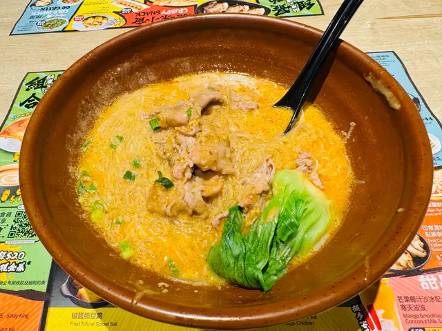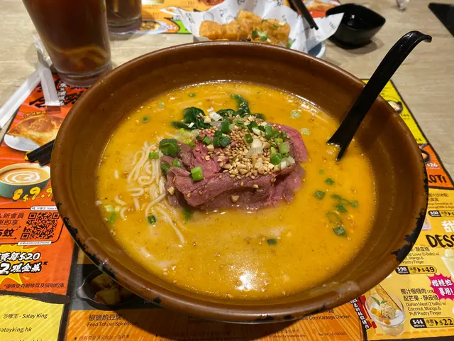 I couldnt even remember my last visit to Satay King...maybe during high school? My friend suggested to go for a quick afternoon tea, we just went in. Menu definitely way more options than from my memory. Literally everything you could think of. Japanese fusion, Indian fusion, Hong Kong style etc. Pretty economical. Beef shoulder blade noodle in Satay soup was decent. It was generous than I expected after mixing the noodle with the toppings. Noodle was soft and well coated with the satay soup. It wasn't spicy just spiced up. Love the savoury. Beef slices were thin and tender. Only few bites were very chewy which I split it out. Love the white sesame sprinkled on top which gave so much nuttiness and crunch. White curry lemongrass pork chop noodle was in enormous portion. Two big thick deep fried pork chop were served. Tender and moist. Not much lemongrass flavour. White curry was smooth and flavourful. Not heavy at all. The dish was okay. Homemade siu mai was smaller than I thought it would be. Even smaller than a bite size, but considering the price, I guess it was acceptable. Chilli oil was so flavourful as they deepfried the chilli flakes and not oily at all. Wish to be spicier. Deep fried tofu was definitely as delicious as you think it can be. No disappointment at all. Crispy natter with silky tofu. Watch out with the explosion of steam. Not bad! More food variety than I could recall back in the old days. Staff were pretty nice and helpful. …查看更多