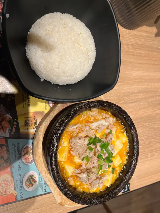 好耐無來食二人套餐, 今晚忽然想食, 叫左指定會叫的蟹粉🦀豆腐煲, 二個酥皮龍蝦湯🦞, 一個小食要左XO醬羅白糕😋👍, 想食炒滑蛋要左一個滑蛋🥚吉豬扒黃咖喱🍛飯, 加左碟蒜片炒通菜, 一杯凍☘️芫茜梳打少甜, 一杯熱青柑仔茉莉花茶, 一杯H字頭士多啤梨🍓雪糕🍧, 另外一個朱古力🍫甜品, 隔左一陣酥皮龍蝦湯🦞送到, 賣相唔錯, 打開個酥皮入面d湯係熱辣辣😘, 個湯都幾香濃, 都算高質, 之後送上蒜片炒通菜, 味道唔錯, 夠青綠, 加左蒜片🧄亦都香d, 而且唔會炒到成碟油👍😋, 之後送來蟹粉🦀豆腐煲, 又係熱辣辣😁👍加少少飯撈來食, 咸咸地幾好食😍, 再之後送來XO醬羅白糕, 佢用石鍋裝住, 咬一口真係超級辣口🤣😂, 大家叫來食的話真係要小心, 食到少少微辣, 但好有羅白味又唔係😆, 之後食滑蛋吉列豬扒飯🥚🍛🐷, 我今日再食, 我個人就喜歡黃咖喱多d, 食落唔係好辣, 夠香亦帶少少甜味, 撈白飯🍛係幾好, 唔會太咸太油😋😍, 不過吉列豬扒🐷係我個人少食吉列🤣食一件已經覺得飽晒, 但食到係新鮮炸, 而且唔會覺得外層脆漿好厚身, 一咬成口油😘🤩🥰, 最鍾意就今晚杯熱飲, 唔會太酸, 飲到少少香味, 飲落喉嚨幾舒服, 都值得再叫😋👍[IMG:2][IMG:4][IMG:6][IMG:8][IMG:10][IMG:12]…查看更多