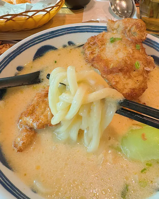 好耐冇食過沙嗲王,印象中沙嗲王淨係食白咖喱同埋豬扒,今日嚟到懷緬吓先!未食過白咖喱烏冬,今次就試吓!🍴午餐F 白咖喱香茅豬扒烏冬日本製烏冬 $69白咖喱湯飲落好香,飲落去有少少似椰汁味?唔辣又惹味,烏冬好煙靭有口感真係日本嗰種,豬扒好香香茅味一啲都唔鹹,食落去好軟腍唔會有嗱口嘅味道!分量都幾足!🍴蒜蓉牛油雞翼2隻+$20雞翼炸好香口,食落去好重蒜香味,不過$20兩隻有啲貴!🍴凍檸檬茶+$3推薦指數: 7/10講真沙嗲王真係歷久不衰,唔知食咩食白咖喱都幾唔錯㗎!查看更多