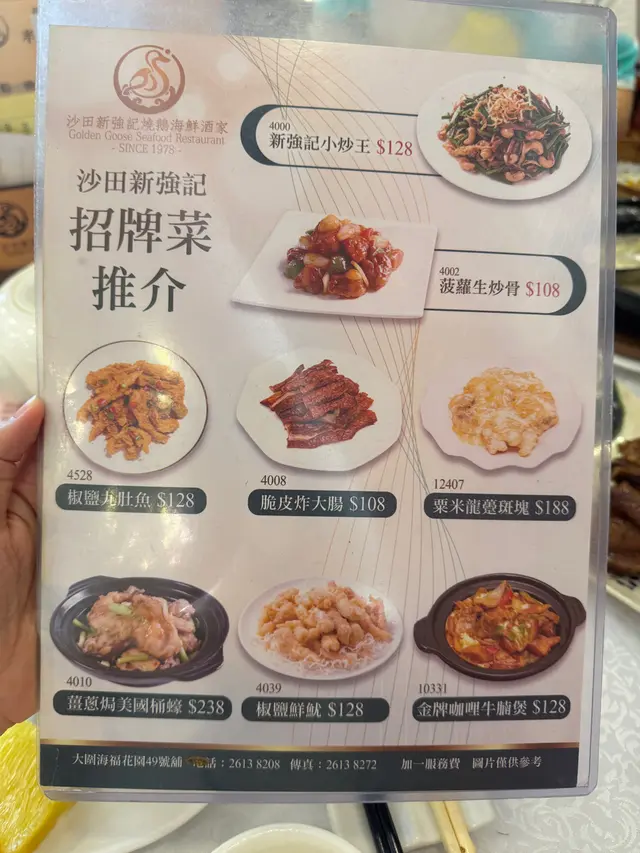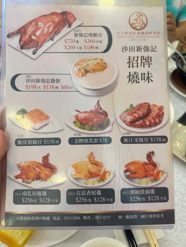 今次去左沙田大圍新強記燒鵝海鮮酒家$758套餐!睇下有咩食🤭🤭😎講開沙田大圍,好多人都識新強記!😎今次試咗個$758套餐,食到燒鵝、乳鴿、海鮮,仲有招牌雞粥!即刻同大家分享下食後感~🤤🤤✅️招牌雞粥一窩一上枱就聞到超香雞味!粥底煲到綿滑起膠,雞肉鮮嫩唔嚡口,仲有少少雞油香滲透粥裡面,啖啖都係精華👍🏻👍🏻食晚餐飲返碗暖粥,簡直係靈魂所在!✅️燒鵝例牌新強記嘅燒鵝果然名不虛傳!🤭🤭皮脆肉嫩,油脂分布均勻,咬落去鵝油香爆出嚟,仲有少少炭燒味!🤤唯一挑剔係例牌份量唔算超大,但味道冇得輸!✅️乳鴿兩隻乳鴿係必點!即叫即炸,熱辣辣上枱,皮脆肉質juicy唔乾柴,醃得夠入味!👍🏻👍🏻真係想encore多兩隻!✅️椒鹽鮮魷椒鹽鮮魷炸粉薄脆,魷魚新鮮彈牙,椒鹽香口唔會過鹹,送啤酒一流!炸得夠乾身,唔油膩,係合格以上嘅水準!🦑✅️豉油皇大蝦豉油皇醬汁濃郁帶甜,蝦肉爽口幾新鮮我試過連殼都食埋!🤣🤣總評:$758套餐真心抵食!尤其係雞粥、燒鵝同乳鴿,絕對係必試之選。環境就典型街坊酒家格局,夠地道。服務阿姐快手快腳,唔會拖泥帶水。推介!👍🏻👍🏻👍🏻…查看更多