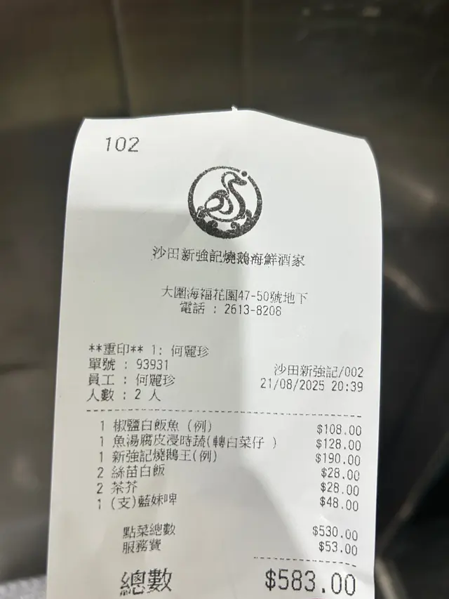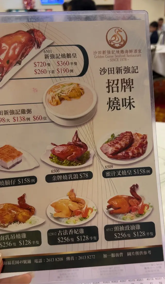 沙田新強記燒鵝海鮮酒家 (大圍) 網址: https://s.openrice.com/QrbS05P4A00 地址: 香港大圍積運街2-8號海福花園商場地下47-50號舖 電話: +852 26138208