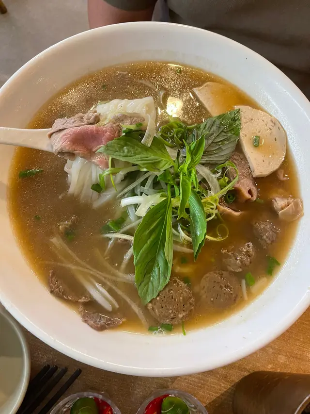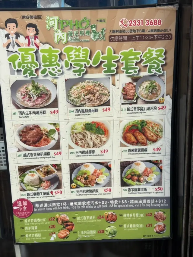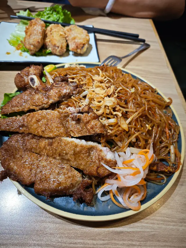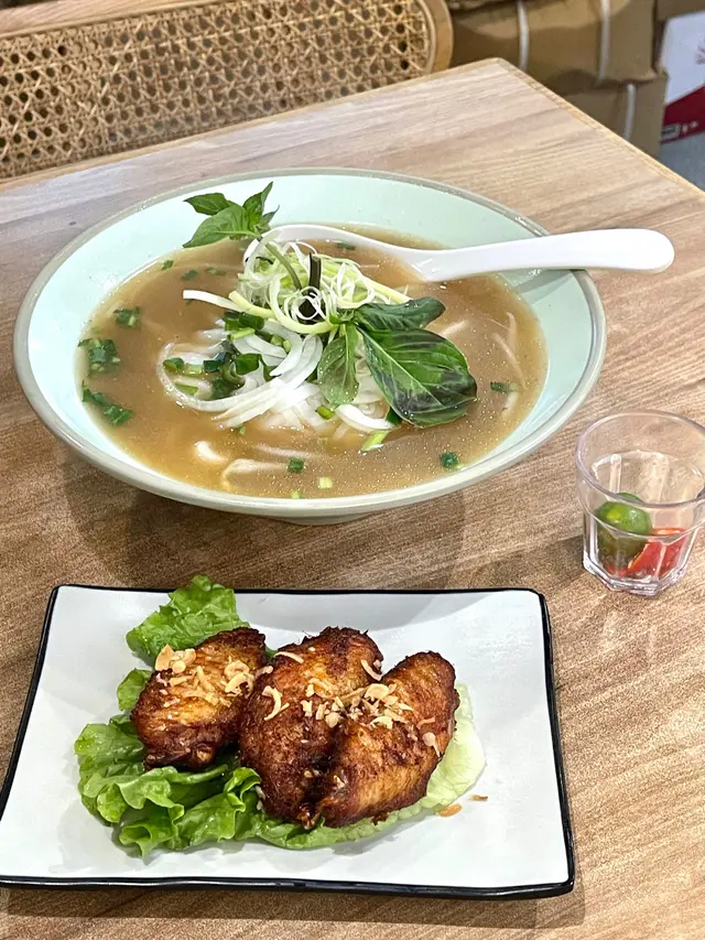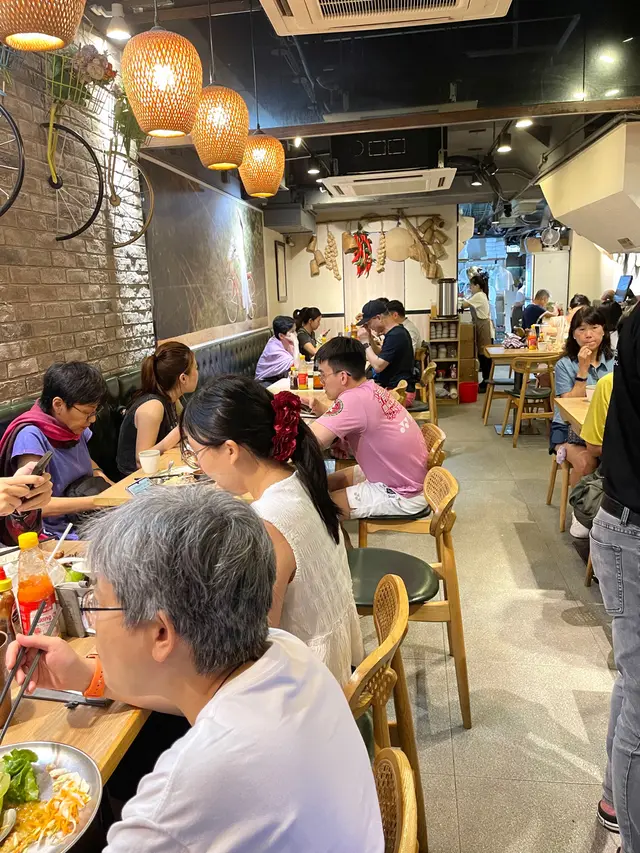 今晚同友人過左來大圍, 我哋揀左去依度食, 望下餐牌都有好多選擇, 最後叫左一個健康田園🥬🥕米紙卷, 一個金不換🍀☘️豬扒🐽炒檬粉, 一個越式菠蘿🍍炒飯, 一個牛🧈油🐔雞翼, 等左一陣牛油🧈雞翼🐔先到, d雞翼🐔都好大只, 唔算外面包好多脆漿, 食到有牛油🧈香味, 但唔係勁濃個只, 但味道唔差, 再之後來健康田園米紙卷, 望到入面包住一d生菜🥬一d🥕红蘿蔔, 再自己加d醬, 食落少少酸酸地, 亦食到好清新的感覺, 再之後送來金不換豬扒🐽炒檬粉, 送來見到超級大碟, 賣相非常靚仔, 條條檬粉都包滿醬汁😍, 夾d來食, 食落唔咸亦唔油, 加左一d金🍀☘️不換, 食落都好香, 舊豬扒🐽就更加好味, 食落有肉汁, 唔會煮到好硬好老咬唔開👍👍, 依個值得推介✔️, 再之後送來越式菠蘿🍍炒飯, 上面有二只蝦🦐, 入面有d青豆粟米同少少海鮮, 炒到一粒一粒米, 食落乾身唔油, 不過味道無檬粉敢突出😆, 之後上網睇原來有幾間分店, 可以再去其他分店試下😋😀…查看更多