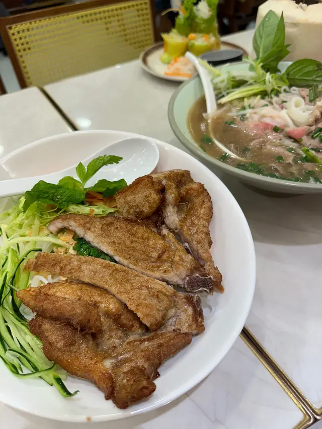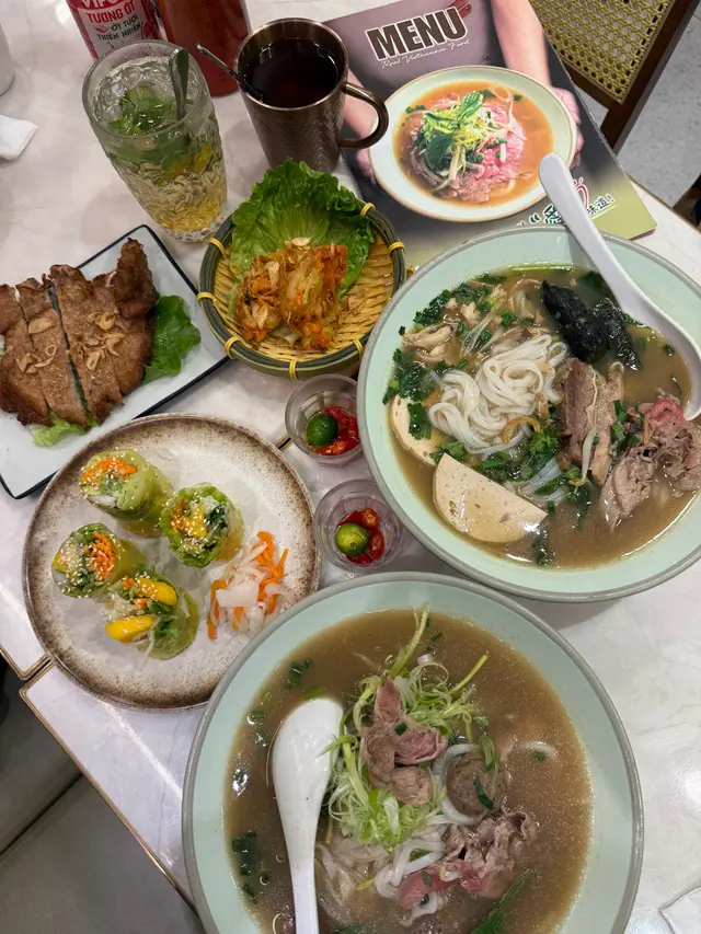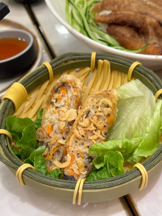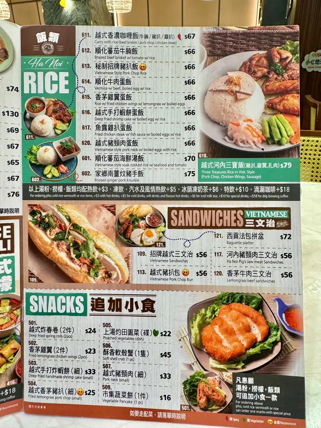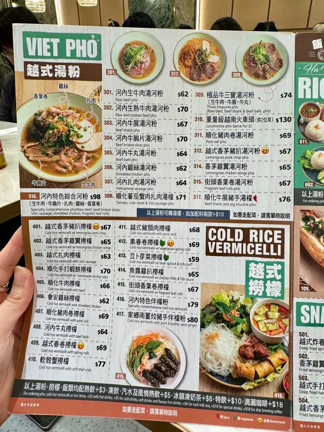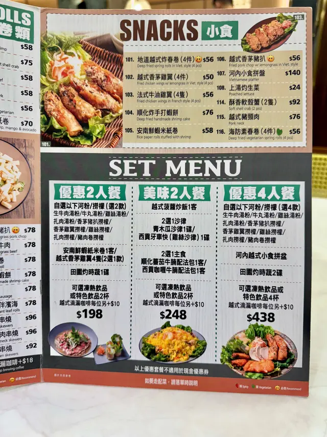 見好耐無食越南野,最近經過油麻地就去咗呢間綠色色調嘅---🌟河內越式料理🌟餐廳員工服務態度好好,餐廳到咗晚飯時間越黎越多人,平日夜晚好彩唔洗等位就坐到👍🏻我哋點咗個二人套餐同埋一個小食💕._./ 2人套餐 /🐥| 香茅雞翼湯檬 |🐥二人套餐其中一個套餐可以揀兩款主食,呢個套餐可以一款指定餸,粉麵可以揀檬粉或湯河,我就揀咗熱食嘅湯檬,會跟配埋青檸同辣椒,湯檬個湯底非常夠味,檬粉份量適中,而且好爽口,香茅雞翼分開碟上,唔會浸到淋身,食落口仲保持到雞翼嘅香脆。.🐖| 豬肉卷撈檬 |🐖撈檬乾身上碗,排得好整齊,倒上酸酸地嘅酸辣湯汁,撈埋一齊,非常適合夏天食,豬肉卷同撈檬非常夾。.🦐| 安南鮮蝦米卷 |🦐蝦米卷係越南菜嘅特色,裏面包住嘅材料豐富,一整隻鮮蝦剝好殼,啖啖都有爽口嘅口感,點埋酸辣汁食,更惹味。.🥬| 田園灼時蔬 |🥬套餐包埋蔬菜,非常健康,而且份量足夠二人食,清淡得黎帶有蒜片粉香味。.☕️| 凍越南滴漏咖啡 |☕️+$10可以揀選越南滴漏咖啡,濃濃嘅咖啡香氣,加咗香甜練奶,中和咖啡嘅苦澀。.🥭| 鮮芒果椰汁西米露 |🥭飲得椰汁西米露,唔會太甜,每一啖都有西米露粒粒嘅口感,非常解渴,仲有香甜嘅鮮芒果果肉粒,好飲👍🏻.🦀| 酥香軟殼蟹(2隻)|🦀一碟有兩隻,砌開半邊上碟,算大隻,炸到外脆,裏面嘅啖啖軟殼蟹肉,脆口到可以成隻一齊食。._.…查看更多