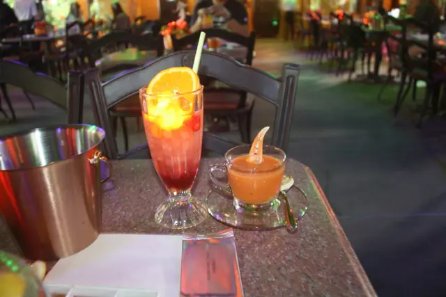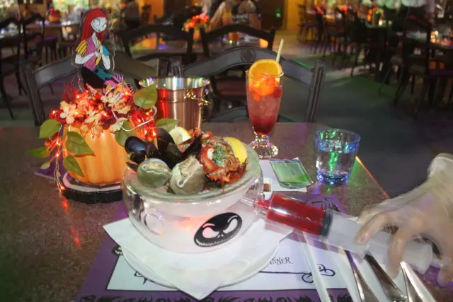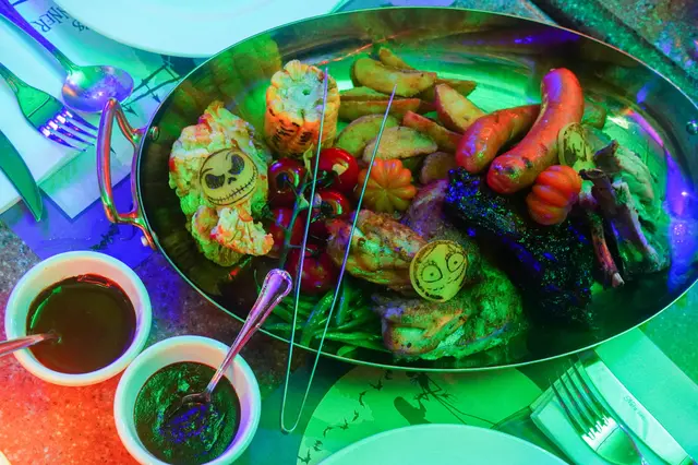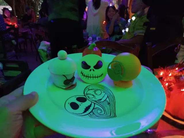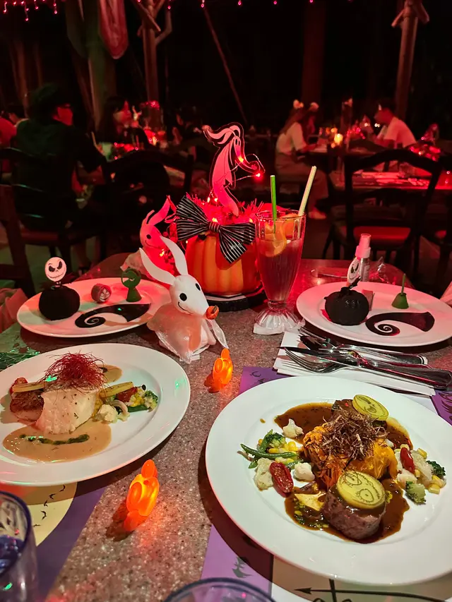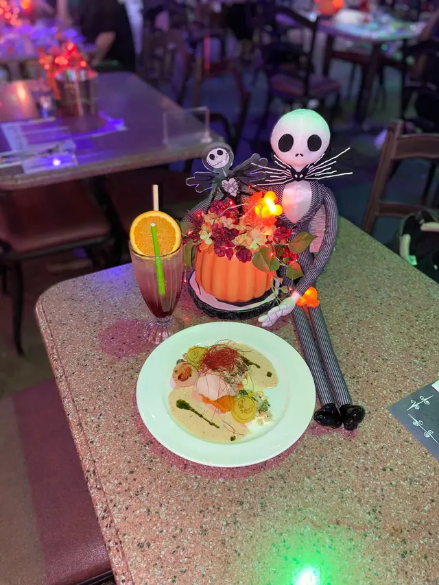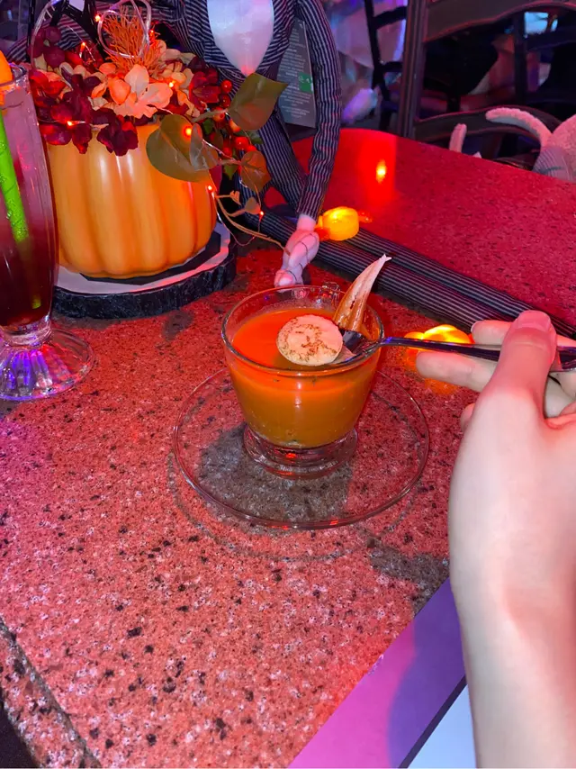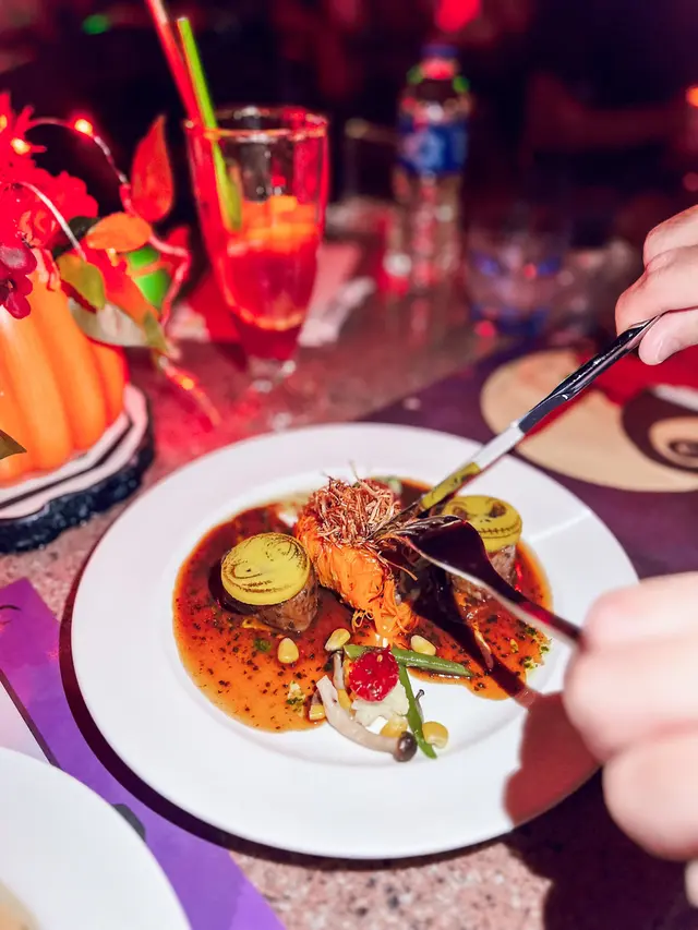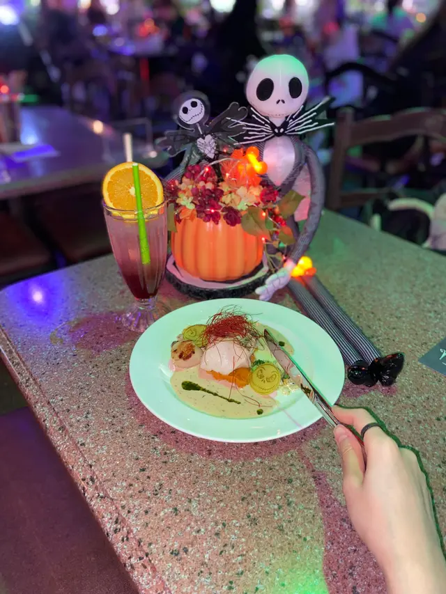 又來到一年一度的萬聖節,香港迪士尼樂園的河景餐廳再次推出阿Jack怪誕大餐。步入餐廳前就能看到投影在餐廳門面的幽靈,還有南瓜、墓碑等的造景。熟悉的佈置和燈光,處處都瀰漫著詭譎的萬聖節氛圍。有興趣記得先去網站預訂,晚餐會分普通日子和特定日子並供應至11月2日。不過就要注意晚餐的預訂是以2位起。以《怪誕城之夜》作為主題的餐廳,今年用餐附送怪誕城迪士尼朋友紀念卡。阿Jack、Sally、Oogie Boogie 會於舞台出現,更會近距離和大家互動。期間都會有合照時間,所以喜歡過些角色的就要把握這個期間限定的晚餐囉。飲品方面,是喝起來有點清爽感的「涼薄蟲露」。薄荷梳打中有金桔、檸檬、青檸。再配糖水,可以依個人口味調整甜度。食物方面,首先是以「恐怖海鮮」為名的冷盤,還放上了骷髏手添一絲詭譎趣味。海鮮有蝦、帶子,另外再搭配南瓜、蘑菇、番茄和柚子,層次幾豐富。接著上桌的是「吸血巫湯」,是以甜椒、番茄為基底的濃湯,熱度亦很足夠。喝起來微酸又帶著甜椒的清香,視覺效果亦頗有頗有萬聖節的詭譎氣氛。主食選了「壞到爆牛」,肉質軟嫩的牛肩胛,再搭配烤時蔬。不過我覺得燒烤汁有點太甜,吃落完全蓋過了牛肉本身的肉味。最後登場的是棺材造型的甜品「怪誕情人」,打開會看到阿Jack & Sally。滿有心思的甜品,但如果將整個吃完會有點太甜膩。那種甜度對我來說,只能將內裡濃郁滑順的朱古力軟心和酸甜雜莓醬吃完。…查看更多