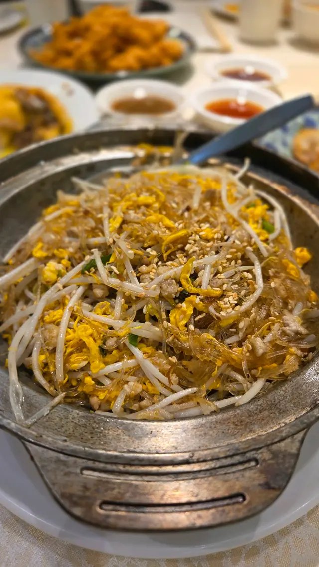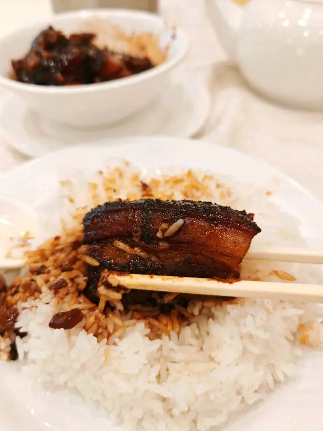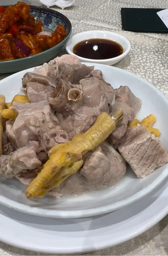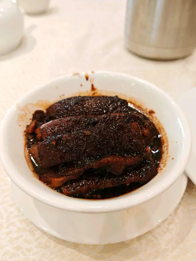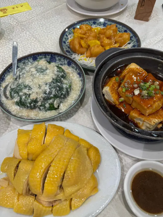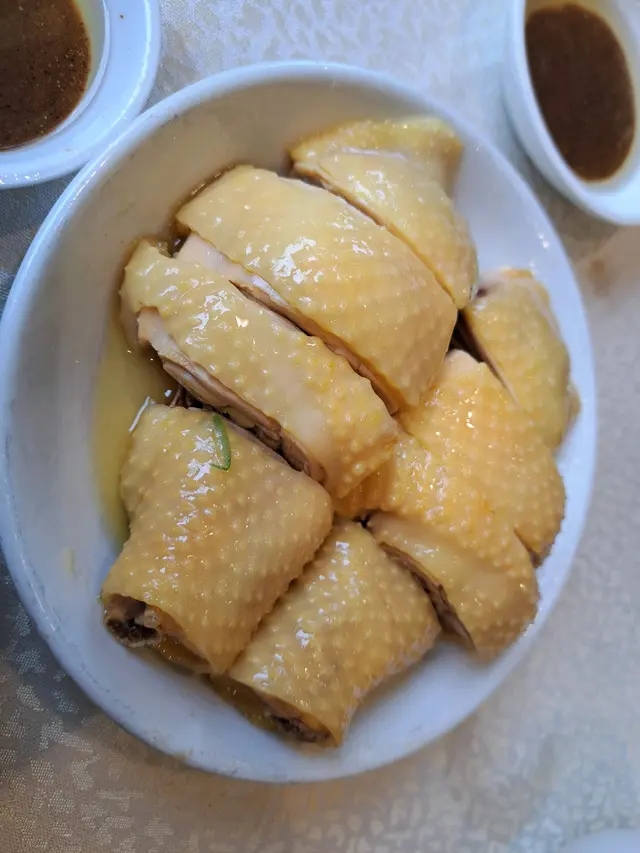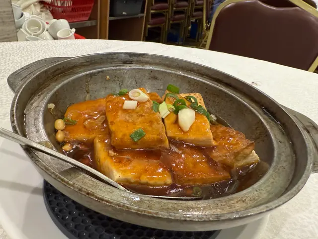 This traditional Hakka restaurant has been in business for over 70 years and used to have several outlets in HK, where I had visited their Causeway Bay one (both old and new) many times before. With the bad economy in recent years, sadly the Sheung Wan outlet is the only remaining one. Today we came to Chuen Cheung Kui.Walking up to the stairs to the first floor, the restaurant has a no-frill, neighbourhood vibe, with circular tables, standard chairs, and dark carpets all familiar décor. Coming early evening there are still many tables but quite soon most of them become occupied, showing that there are still good patronage to this old restaurant.We order some traditional Hakka dishes, starting with their Signature Salt Baked Chicken 金牌鹽焗雞 ($174 half). The chicken skin is smooth and the flesh tender, infused with saltiness but not excessive. The taste is good, with also a generous portion, no wonder we see almost all the tables are ordering this dish. A must try.The other Hakka dish we have is Dongjiang Tofu 東江豆腐煲 ($148). The tofu is pan-fried before pouring with a thick oyster sauce, with some soybeans underneath it. Decent in taste, but honestly there are so little meat stuffed in the tofu it is almost non-existent. I also don’t like everything that is just put in the casserole instead of cooking The last dish is something we have not eaten for so long. The Pan-fried Beef Fillet with Maggi Sauce 美極香煎牛柳 ($168) is quite nicely done, with the beef fillet tender and not over-cooked, and the shredded onion helps to provide fragrance and a bit of different texture, together with the savoury taste of Maggi sauce.When we ask for the bill, the staff kindly checked whether we wanted dessert and duly provide us with each complimentary Black Sesame Sweet Soup. Not too sweet, it is quite delicious, and great that here they are offering free for all diners as a token of appreciation.Service is quite nice, while it has the usual Chinese restaurant style the staff are overall friendly and helpful. The bill is $579 which is apparently good value. For a no-frill meal with friends, this remains a great option and I hope they will be able to weather out the current bad economy and continue to offer HK people these familiar choices.…查看更多