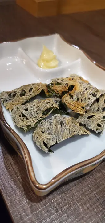 呢間餐廳整體上都不錯,不論係食物,環境同服務首先講一講環境先,我覺得感覺係清潔嘅,呢度枱櫈唔算多,所以都坐得舒服,員工都好nice!!叫咗啲特別嘅嘢食會介紹下咁~同客人都會講幾句嘢~其實望出去嘅景觀應該係好靚,不過夜晚嘅話啲窗反哂光睇唔到🤣· 前菜係牛舌+蘿蔔!牛舌切成一粒粒,都好腍又入味,蘿蔔都係!· 泓卷 $128呢個卷上面鋪滿碎左嘅生三文魚吞拿魚同一啲白魚仲有啲生嘅紫洋蔥,舊壽司飯就包住舊蛋同青瓜絲。食落都口感豐富嘅不過我覺得啲洋蔥有少少蓋過左魚生,同埋舊蛋帶甜,我自己都係比較鍾意食咸多啲🫢· 什錦魚生沙律 $138個沙律都幾大份下,有三文魚同呑拿魚粒,仲有啲蕃茄同青瓜,用咗柚子汁,成個沙律會酸酸地,幾開胃,魚生份量都唔少~· 魷魚糯米飯 $98店員有介紹到個醬汁係用魷魚嘅內臟整嘅,所以係好濃~建議我哋唔係沾咁多嚟食🤣不過我就覺得沾多啲好啲!因為好好食😋同個糯米飯都好夾,魷魚配糯米飯個口感好特別!建議嚟呢度都可以叫魷魚糯米飯食🫡· 蘆筍豚肉 $58· 牛舌心 $58兩串都唔會燒到好乾,最怕啲嘢燒到又乾又硬,但呢個食落幾juicy,特別係蘆筍咬落有汁調味都唔會過咸,牛舌心食落唔會太韌· 白桃梳打 荔枝梳打 $58天氣咁熱係需要飲梳打水先爽🤣🤣🍽 泓居酒屋 | 尖沙咀📍 尖沙咀廣東道122-126號中港中心17樓…查看更多