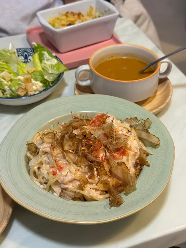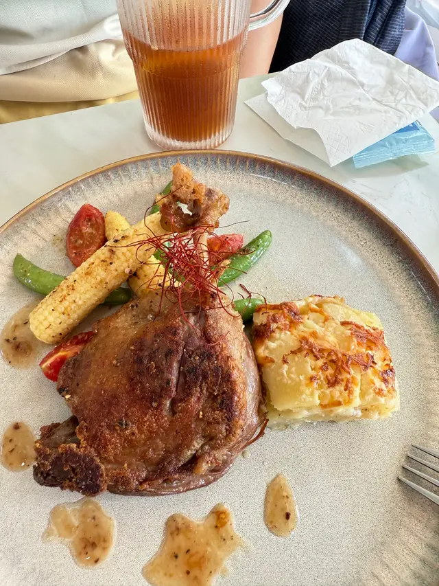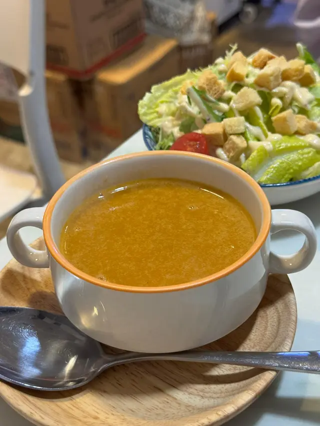 最近發掘到一間好有驚喜嘅小店—「法國小屋」,主打平價西餐同甜品,舖頭唔大但氛圍溫馨,重點係出品認真,真係食得出用心!🥣法國龍蝦湯一上枱就聞到蝦既香氣撲鼻,湯飲起嚟唔會覺得膩,充滿海鮮味道,飲落口滑順,有陣陣香氣同微微甜味,好似飲緊一碗用長時間熬出嚟嘅法式湯。🥗田園沙律菜非常新鮮爽脆,無論係生菜定車厘茄都保持水分,沙律汁清爽唔會搶味,食落冇負擔。🍝明太子蟹肉意粉今餐最驚喜!蟹肉超慷慨,啖啖都係,肉質鮮甜,配合明太子醬汁又鹹又香,掛汁力強。意粉煙韌唔淋,上面撒上櫻花蝦乾同木魚碎,令整道菜多咗份日系風味。🧇咸牛油焦糖窩夫(半份)窩夫外脆內軟,焦糖味唔會太甜,咸牛油中和咗甜膩感,令甜品整體味道更平衡,半份份量啱啱好,唔會膩。🧀招牌千層芝士薯片 $48簡單材料做出豐富效果!每層薯片都焗得唔會太軟身,層層堆疊,唔單止有口感,芝士味濃而不膩。🥓法式芝士煙肉洋蔥批 $88真心推薦!酥皮薄脆唔油,入面嘅芝士拉絲效果十足,煙肉鹹香四溢,仲帶淡淡洋蔥甜味,食完令人回味,絕對係水準之上。呢間小店冇用浮誇嘅擺盤或者高級食材,但每一道菜都見得到廚師嘅細心。味道偏向大眾化,但調味非常平衡,真正將簡單昇華。喺一個平實嘅價位下,做到咁多層次,真係好難得,值得大家多啲支持本地用心小店!…查看更多