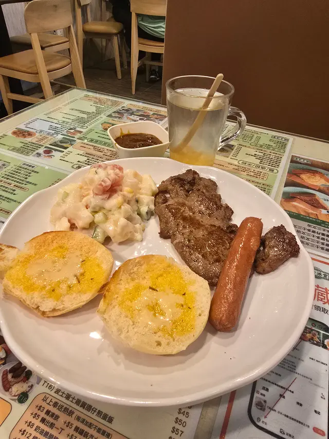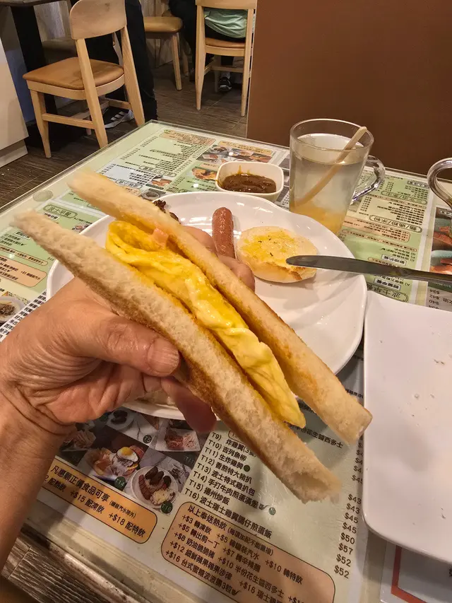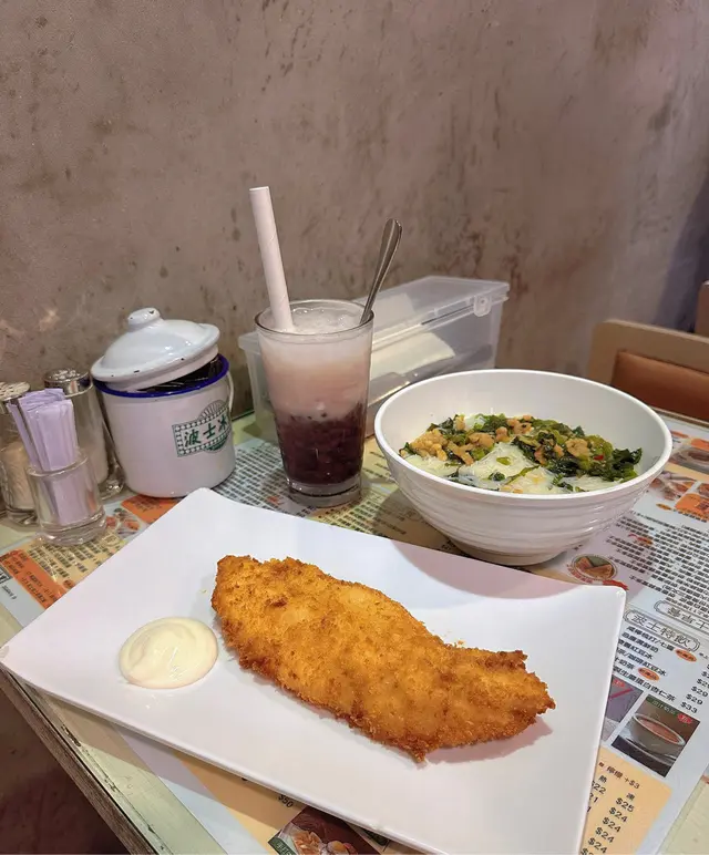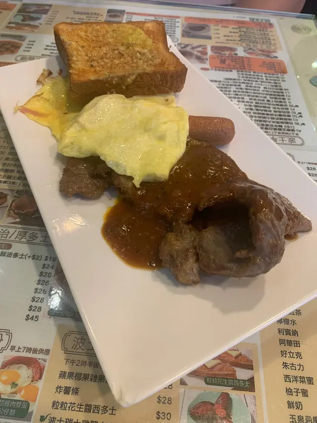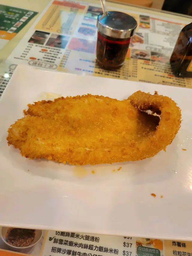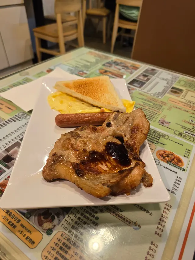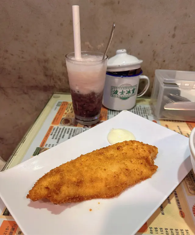 今天早上跟爸爸到灣仔會展逛美食展,落巴士後我們先醫肚,再出發血拼。行經這間波士冰室,見到早餐款式幾多,而且食客滿滿,所以便來這間餐廳吃過早餐!早餐餐牌款式很多,基本的三文治、扒餐、粉麵餐等等應有盡有。葡式咖啡,咖啡味香濃,非常香滑,醒神!檸檬西洋菜蜜,檸檬酸的,西洋菜蜜非常滋潤開胃!香煎特大豬扒餐,這塊豬扒超級巨大,啖啖肉的,而且豬肉非常香濃。一啖又一啖的非常好味。另外獨特的醬汁令豬扒更為惹味,這款醬汁非常出色!除此之外,這個套餐還有很多美食,有美味的火腿奄列,火腿數量超多,非常足料!仲可以揀選配香腸或午餐肉!這個套餐非常夠份量,而且飽肚!當然少不了香草蒜蓉多士,平常茶餐廳多數是吃到牛油多士,這間茶餐廳竟然是配上香草蒜蓉多士!香草蒜蓉非常惹味,啖啖都有滿滿滋味!另一客點選了吉列魚柳套餐,這塊吉列魚柳相當巨型,厚厚的魚扒經過吉列後變得金黃香脆,外脆內軟,口感非常美味!而且非常足料超大塊魚柳!極為滿足!配上沙律醬來吃超惹味!這個套餐還都是會配上了午餐肉或香腸、火腿奄列、香草蒜蓉多士的!超級豐盛的套餐。我們還額外加配了迷你五穀蛋白麥皮,非常足料美味!仲加了一件脆卜卜的薯餅!在波士冰室內吃了一頓美味又飽肚的早餐!…查看更多
