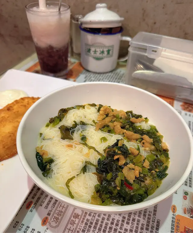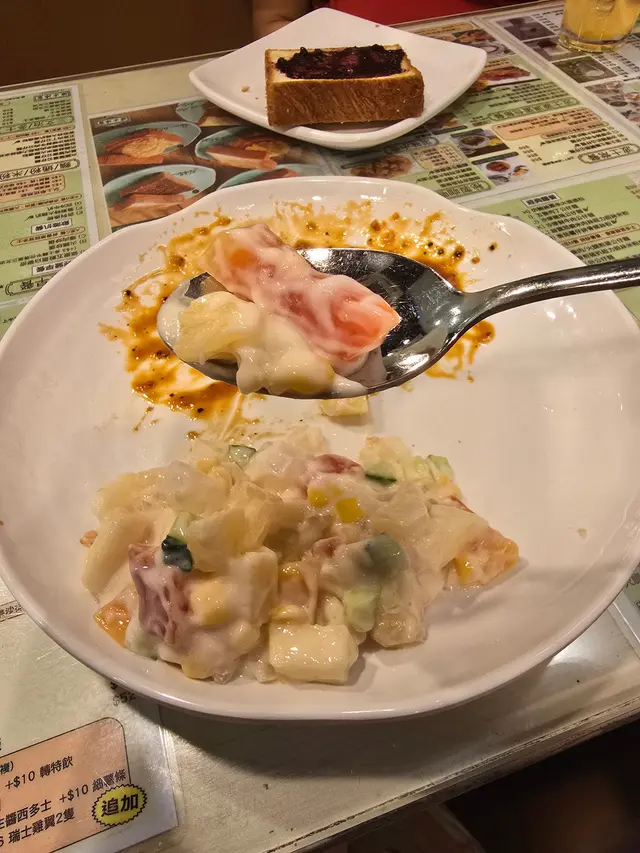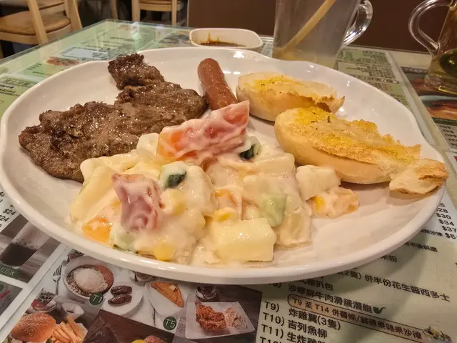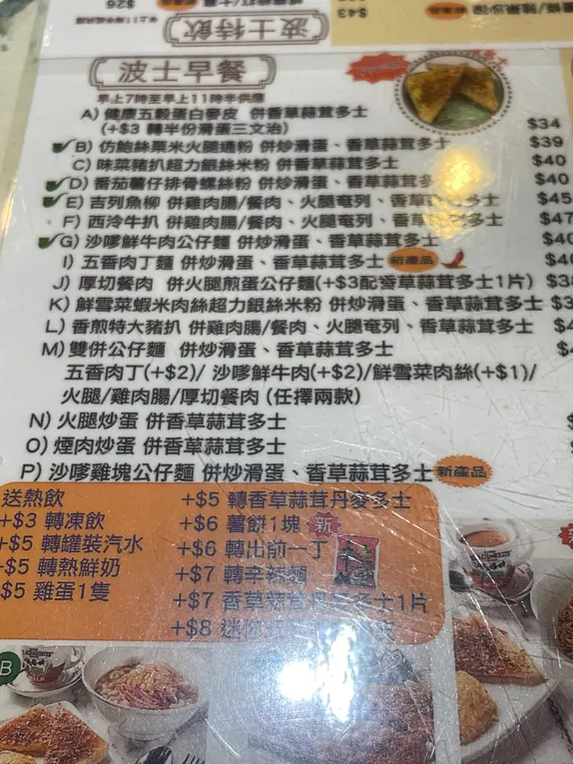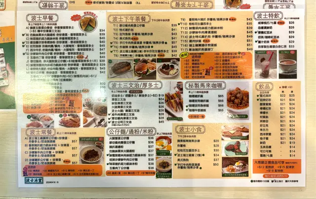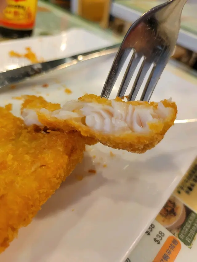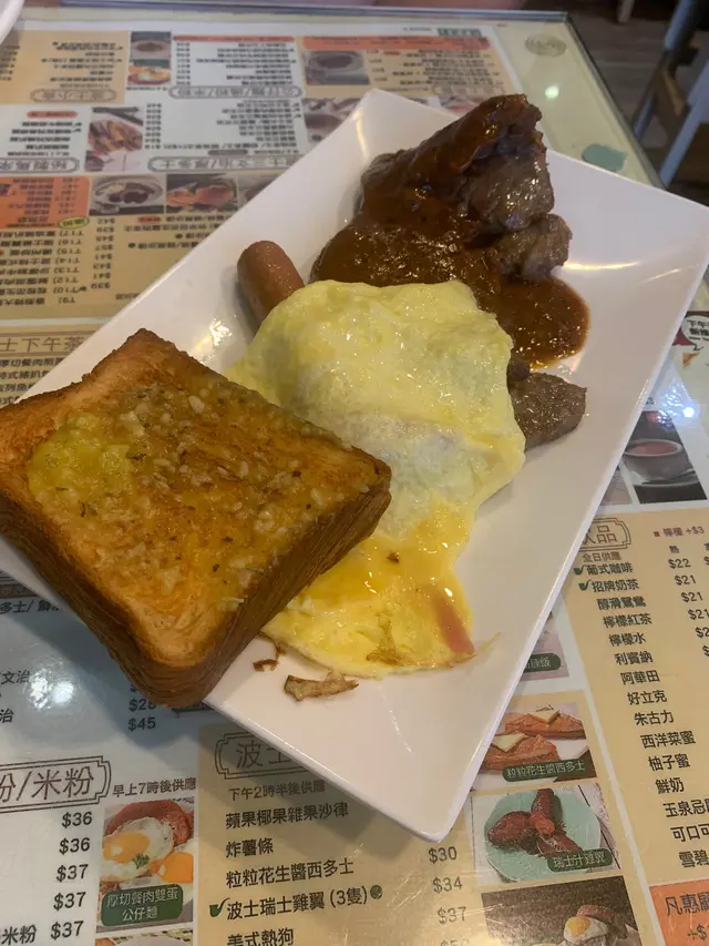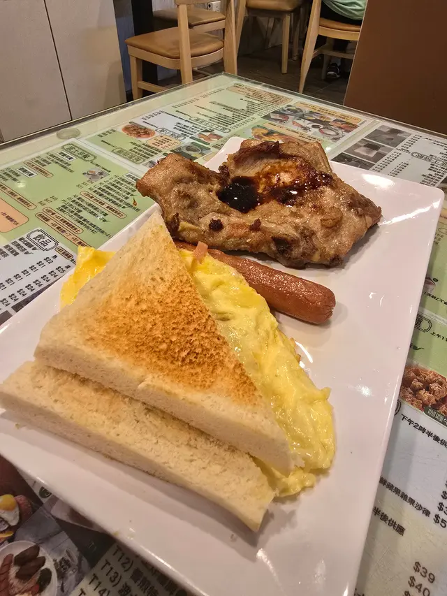 今天早上跟爸爸到灣仔會展逛美食展,落巴士後我們先醫肚,再出發血拼。行經這間波士冰室,見到早餐款式幾多,而且食客滿滿,所以便來這間餐廳吃過早餐!早餐餐牌款式很多,基本的三文治、扒餐、粉麵餐等等應有盡有。葡式咖啡,咖啡味香濃,非常香滑,醒神!檸檬西洋菜蜜,檸檬酸的,西洋菜蜜非常滋潤開胃!香煎特大豬扒餐,這塊豬扒超級巨大,啖啖肉的,而且豬肉非常香濃。一啖又一啖的非常好味。另外獨特的醬汁令豬扒更為惹味,這款醬汁非常出色!除此之外,這個套餐還有很多美食,有美味的火腿奄列,火腿數量超多,非常足料!仲可以揀選配香腸或午餐肉!這個套餐非常夠份量,而且飽肚!當然少不了香草蒜蓉多士,平常茶餐廳多數是吃到牛油多士,這間茶餐廳竟然是配上香草蒜蓉多士!香草蒜蓉非常惹味,啖啖都有滿滿滋味!另一客點選了吉列魚柳套餐,這塊吉列魚柳相當巨型,厚厚的魚扒經過吉列後變得金黃香脆,外脆內軟,口感非常美味!而且非常足料超大塊魚柳!極為滿足!配上沙律醬來吃超惹味!這個套餐還都是會配上了午餐肉或香腸、火腿奄列、香草蒜蓉多士的!超級豐盛的套餐。我們還額外加配了迷你五穀蛋白麥皮,非常足料美味!仲加了一件脆卜卜的薯餅!在波士冰室內吃了一頓美味又飽肚的早餐!…查看更多