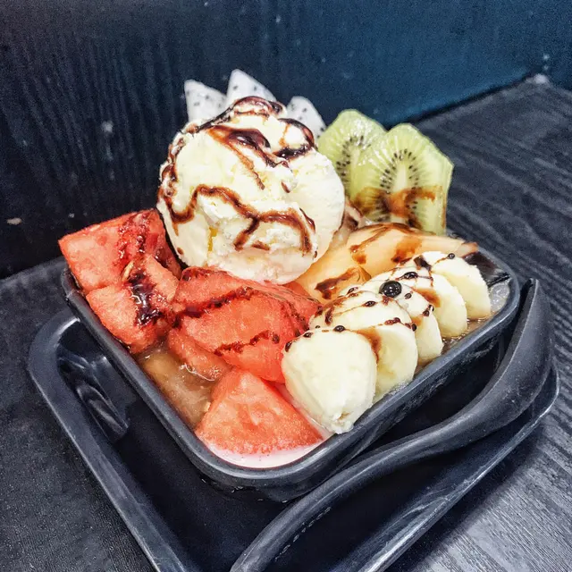 Delivery this dessert and arrived in perfect condition. But I was surprise to find that the composition was made with a flashy orange ice cream and some pieces of watermelon! They have some pieces of banana and chocolate ice cream, but the mix of all doesn't really match.My childhood memories for a perfect banana split was 3 flavors of ice creams: chocolate, vanilla, strawberry + 1 banana + hand made liquid dark chocolate, done, enjoy 🤤.…查看更多