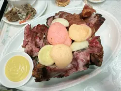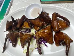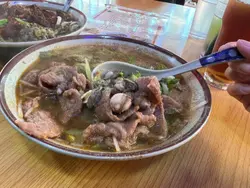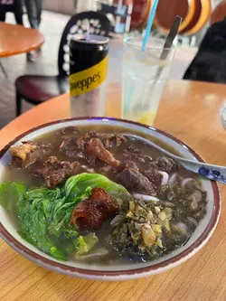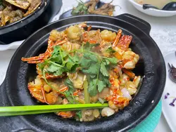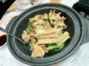 欄杆間,香氣撲鼻,我就是被這引誘进了三坡坊的食堂。無名氏的食堂,但料理絕不無名。首先上來的招牌上海雲吞麵,簡直太襯心意啦!啲雲吞啖啖肉感,飽滿得滋滋直落,湯頭清甜,絲毫不膩。🍜紅燒牛筋腩麵盡顯扎實功夫,牛筋嗲得滑溜溜,牛腩卻爽口得嚟又唔會太難咬,簡直係牙齒嘅恩物。😋 麵條吸滿咗牛腩湯底嘅精華,齣色!秘製豬扒,外皮香烤得啱啱好,一啖咬落去又香又腍,肉汁滲透每一寸味蕾。而五香牛展就更加出彩,香滑火侯恰到好處,五香味撲鼻,食得我連聲稱讚!嗲心的啫啫爆龍蝦跟埋賣相一流嘅避風塘炒虎蝦,每一口都爆出海的鮮美,辣椒蒜香揮散不去,留喺舌尖上嘅熱浪令人回味無窮。🦞👍食物多多,意猶未盡,就連蚵仔煎同五香鳳爪都令人心癮難耐,只能說,下次再戰,三坡坊嘅味道,係永遠食唔膩嘅浪漫。…查看更多