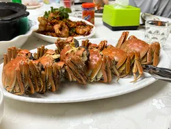 荃灣一向美食多,但好食的大排檔選擇都唔少,今次我地朋友聚餐就揀左波記,交通都算方便。老闆建議我地每人兩隻,可分蒸同鹽焗兩種食法。大閘蟹好大隻,而肉質鮮甜美味,每一口都飽滿滑嫩,蟹黃蟹膏飽滿鮮黃,啲膏勁香好正!我自己就鍾意鹽焗,因為夠惹味,好香!開胃前菜叫左燒乳鴿,外脆內嫩好Juicy!避風塘炒虎蝦🦐,蝦肉好彈牙鮮甜,味道重鹹香辣,當中的炸蒜更是整道菜的精髓,適合下酒之餘,炸蒜粒更可是香口佐飯,好惹味。啫啫爆龍蝦🦞,加入港式啫啫醬,襯托龍蝦鮮味,食落香脆,賣相都好吸引 !仲有豉椒鵝腸、薑蔥炒龍躉、高湯煮蜆(我都唔識分的貝殼類🤣),所有食物都有質素,份量都好足,味道唔錯!值得再來試下其他菜試!…查看更多