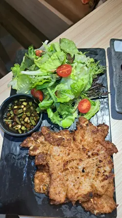 餐廳完全隱藏在村屋之中, 如果朋友不向我介紹, 加上以前住大圍才能容易找到餐廳 😆 餐廳在村屋地下, 以白杏色為主, 環境蠻清新。生蝦刺身 $178生蝦刺身每件也不小, 上面有辣椒和蒜粒, 點綴一下便好了, 不用跟刺身一起吃 😗 刺身非常新鮮爽彈, 比平時日本的蝦刺身更爽口 🤩 配上秘制甜酸醬, 泰式風味立刻顯現出來 🤗 有幸店員推介, 這款是今餐最好吃的菜餚。菠蘿雞絲炒飯 $105一般都是菠蘿海鮮, 今次試試點雞絲代替, 首先炒飯上面鋪滿肉鬆 😃 雞絲味道依然不會被覆蓋, 裡面有提子乾, 炒飯能做到粒粒效果。我與朋友已經各吃了1碗, 炒飯好似沒吃過一樣, 懷疑廚師把飯堆到滿滿 🤭泰式炒金邊粉 $95朋友很喜歡金邊粉, 所以特別期待, 可惜我跟朋友都覺得金邊粉有點未如理想 🫠 味道上微酸, 是正常的, 不過粘性稍重, 而且過於乾身。泰式椰子雞湯 $68湯品應該有6碗份多, 多到像灌水般 😅 未喝已經嗅到椰子飄香, 大概迎合香港人口味, 只有微微酸, 裡面有大量雞肉和芫荽蔥, 這也是其中1道我喜歡的菜式 😊馬拉盞炒菜苗 $78菜苗青翠鮮嫩, 但略嫌硬了點, 用馬拉盞炒香, 每條菜苗都充斥馬拉盞的惹味 😌可以說餐廳性價比超高, 菜餚份量驚人, 相信一家大細大約只需要3百多就可以了, 而味道也很不錯。…查看更多