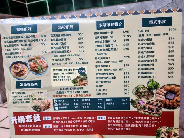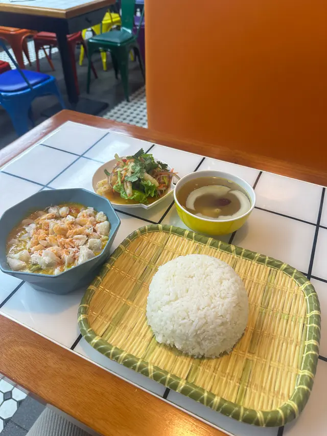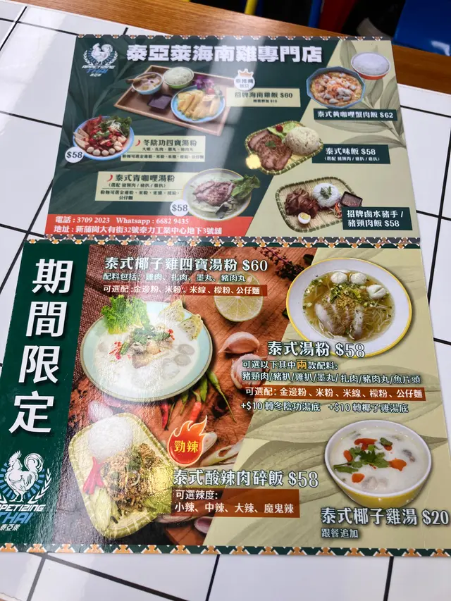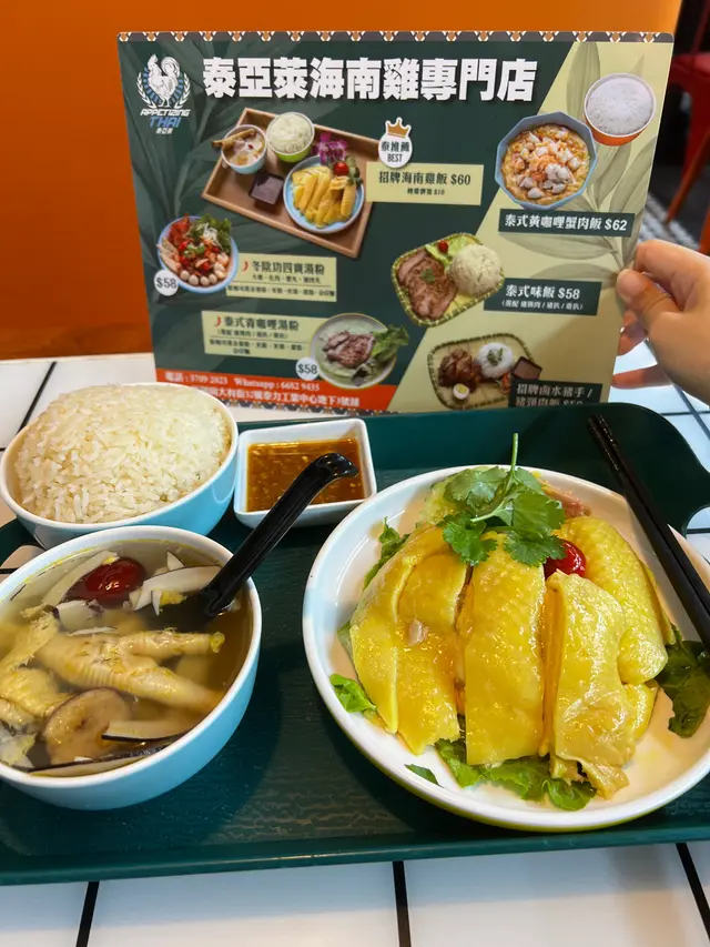 咁啱去開新蒲崗做嘢,見到依間外表好colorful好泰式嘅店舖奇心驅使下就行咗埋去睇吓咩嚟,原來係一間泰式食店,見係時候食飯時間,就決定去試吓。 冇諗過星期六唔係返工時間都會滿晒座☺️可見幾受歡迎。🐔 招牌海南雞飯($60) : 每次去泰國都一定會食嘅海南雞飯😍 今次我揀咗雞胸,因為貪佢蛋白質夠高。雞胸非常之滑嫩😍 食到停唔到口😚🤣 呢間提供嘅醬唔係傳統嘅薑蒜,而係特調嘅汁醬,食落更加香口😝 跟餐仲送椰子雞湯,係滿滿的湯渣! 入口係超濃嘅椰子香味重點係一啲都唔會好油!🦐 泰式炸蝦餅(兩件) : 餐可以以優惠價($16)加配食品,仲要數量不限👀 泰菜,當然要選擇蝦餅。 蝦餅唔會似出面一啲買返嚟嘅貨咁乾爭爭, 食落去好彈牙,又唔會太熱氣。🐥 泰式酸辣鳳爪: 呢個都係跟餐加配。 份量合理鳳爪好咬口,再加上酸辣汁鍾意食辣嘢嘅朋友會好鍾意🤣🍡 泰式千層糕: 泰國最出名嘅甜品之一。 本身想嗌糯米飯,但咁啱佢要下午茶時間兩點打後先有,所以唯有留返下次食。 千層糕幾香,唔會好黐牙。🥤 泰式奶綠($8) :跟餐假$8可以嗌。相信係泰式奶茶入面比較出名的一款。飲落去比外間的泰茶店冇咁甜,同埋幾香奶味。 店員十分之有禮貌,而且好好服務。下次去開新蒲崗食嘢,或者同朋友可以嚟依度食。☺️…查看更多