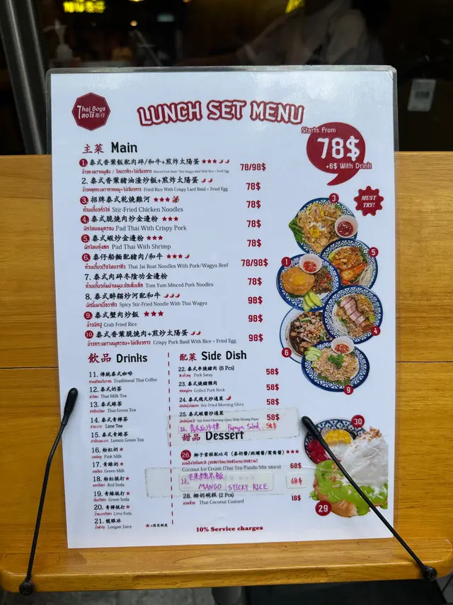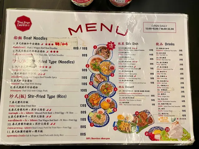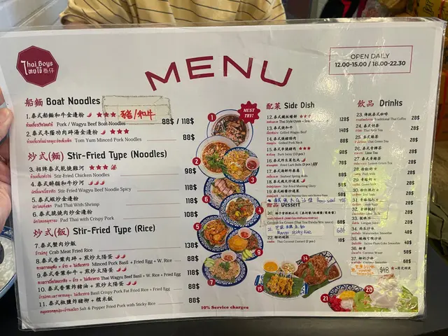 # 🇹🇭 【食評】尖沙咀《泰仔 Thai Boys》——天花板級泰菜滋味🔥 今日同老婆行到尖沙咀Ashley Road,心血來潮諗試新開嘅呢間泰菜店《泰仔 Thai Boys》。一入門口已經俾嗰股濃厚泰式氣氛吸引—— 店內裝修好新淨,牆身有啲色彩繽紛又地道feel嘅泰國poster,少少hipster味但唔浮誇,環境整體光亮乾淨。 最加分嘅係店員全部都係泰國人,講英文加啲泰式口音英文,好親切,感覺真係有少少坐喺曼谷街邊食檔咁既錯覺。 ---## 🥢 主菜篇 ### 🐄 和牛炒河($118)講真,呢碟和牛炒河係成餐嘅靈魂。 一上枱嗰下已經聞到陣陣鑊氣撲鼻,炒河用嘅醬汁鹹香帶少少辣味,個味層次好豐富。河粉啜晒汁又唔爛,炒得夠乾爽; 重點係個「和牛」👍🏼——肉嫩得嚟仲好juicy,啲油香滲晒入去啲河粉入面,啖啖滿足。 真係想講一句:**泰式炒河嘅天花板!** ---### 🦀 蟹肉炒飯($138) 飯炒得金黃,每粒飯都分明乾爽,冇油笠笠嗰種感覺。 蟹肉份量勁多,唔係得啲碎屑,而係真‧蟹肉啖啖肉; 配上佢隨碟附送嘅青檸同魚露辣椒汁,一啖蟹肉一啖飯,加埋少少青瓜片,香口得嚟又夠清新——食極都唔膩。 ---### 🐷 燒豬頸肉($68) 呢個都係驚喜之一!切得厚身啱啱好,每件都有靚油脂層,燒到外脆內嫩。 沾埋佢嗰個泰式酸辣汁,一齊食真係好惹味。 份量唔少,兩個人share啱啱好。 ---### 🦪 蠔餅($128) 一上枱個賣相就好吸引——煎蛋金黃色,表面啲蠔粒同魷魚又多又大粒! 個蛋煎到外脆內滑,帶微微焦香;配埋海鮮,真心勁正。 淋啲甜辣汁落去,酸甜平衡一流,好似瞬間穿越到曼谷夜市咁。 ---## 🥥 飲品篇 ### 椰汁沙冰($88) 呢杯真係超浮誇🤣 一大個椰青入面堆滿晒白雪雪嘅沙冰,賣相100分。 飲落超滑、清甜得嚟唔死甜,仲食到啲椰肉碎。兩個人share都飲唔晒,打卡又好味。 ---## 💬 總結感想 《泰仔 Thai Boys》呢間尖沙咀泰菜店真係有驚喜。 **食物水準高**:鑊氣十足、味道真材實料; **環境舒服**:新淨又有泰國風情; **服務態度好**:店員有禮又細心; **價錢中等偏實惠**:四道菜加飲品埋單$594(連加一),以尖沙咀嚟講非常合理。 ---### 🌟 推介指數:⭐⭐⭐⭐⭐(5星滿分) **必食推介**:和牛炒河+蟹肉炒飯+椰汁沙冰 **一句總結**: > 真材實料嘅泰式風味,唔洗飛曼谷都食到地道滋味!🔥 📍 **地址**:尖沙咀亞士厘道21號地下2號舖 ⏰ **營業時間**:12:00–15:00、18:00–22:30 🥣 下次會再黎試佢嘅泰式船麵!…查看更多