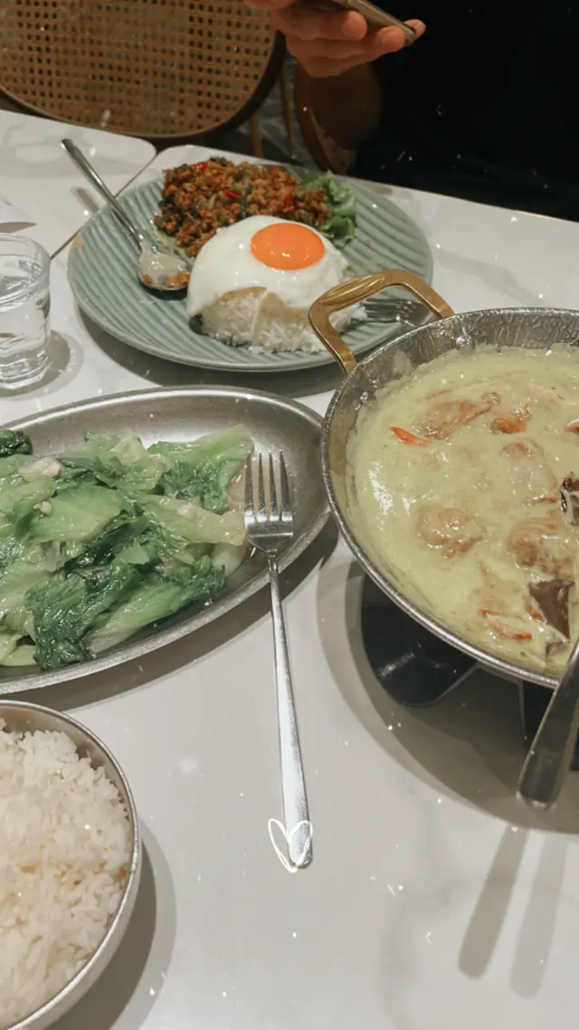 🍖炭燒泰式串燒 小編就揀左雞肉🍗,炭火味夠,雞肉都烤得外焦內嫩,最重要係佢個沙嗲花生醬夠晒香濃,食落非常香甜。整體幾香口,小編食完覺得4串岩岩好,唔會太多太少。🫕椰香青咖喱牛腩咖哩椰味同香料平衡做得幾好,味道偏濃。牛腩都幾腍,配料茄子都入味,可惜小編今日叫咗炒飯,如果唔係嗌薄餅配咖喱食就真係岩晒!🍛蝦頭醬油炒飯蝦頭油香氣突出,飯粒炒得乾爽,每粒米都有味道。加咗蝦仁之後海鮮味更重,口感豐富。整體偏鹹鮮,幾惹味,兩個人食一碟都飽。🤤…查看更多