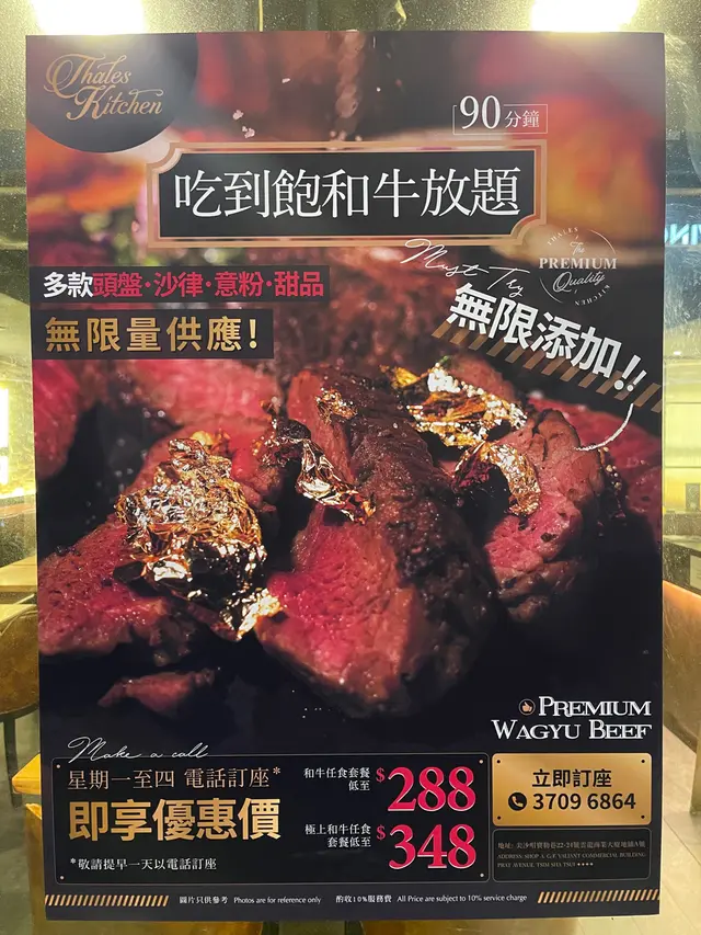 男朋友很喜歡吃肉 特別是牛肉每餐都要有肉才會滿足今次帶他去吃牛扒放題 他一定喜歡而且餐廳環境舒適 可以一邊吃一邊談天✨頂級牛扒放題✨有多款牛扒選擇 威靈頓牛柳也有還有日本熊本霜降和牛、美國安格斯牛柳、美國安格斯牛仔骨、紐西蘭草飼西冷、澳洲純血和牛腿眼肉、美國SRF和牛後腿肉、美國SRF和牛腹肉,牛魔王一定要試一試 🐮除了牛扒還有餐湯、沙律、小食、肉類、意粉、飲品、甜品等多款選擇✨海鮮龍蝦湯 必點之選味道濃郁鮮味,湯裏面有很多海鮮配料✨前菜和沙律都有很多選擇我選了凱撒沙律、蕃茄配水牛芝士片,另外選了香草田螺、凍蝦配雞尾汁、黑白半熟吞拿魚每款份量不算多,可以每款都試一試✨主菜除了牛肉還可以選擇法式香草燒羊架、特色桂花糖燒雞扒、西班牙豬梅花扒、香前銀鱈魚柳各樣食物味道也不錯✨飲品也許是無限量供應選擇了果汁 中和了肉類的油膩感用餐時間有90分鐘最後不要忘記下單甜品啊 ❤️…查看更多