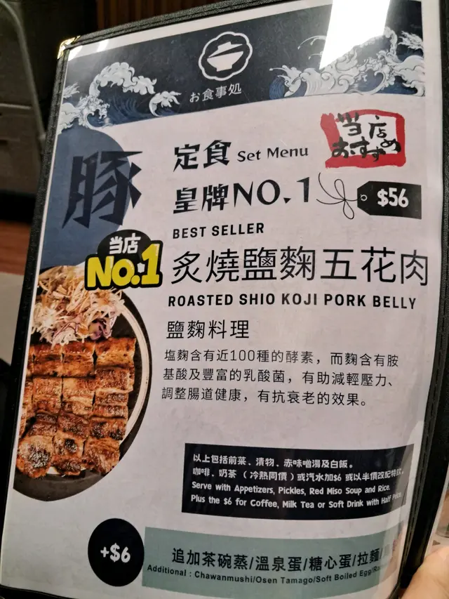 有一日經過新蒲崗發現一間日式餐廳見到有定食set 🤤好抵食咁所以就試吓~見到佢menu寫住有個皇牌五花肉話係NO.1 ~ 比佢個名吸引左🤩👉🏻豚NO.1 皇牌灸燒鹽麴五花肉🐷 $56五花肉燒到岩岩好,幾脆口,完全唔乾~十分juicy!!!!份量好多😱成十幾片五花肉依個價錢真係好抵食😍本身個set已經包左前菜,漬物,赤味噌湯加埋碗珍珠米🍚加$6 仲可以加茶碗蒸,溫泉蛋,糖心蛋拉麵或烏冬🤣,性價比真係超級高😎查看更多
