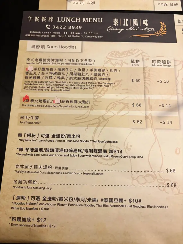 泰北風味 (銅鑼灣) 網址: https://s.openrice.com/QrbS0ybu100 地址: 香港銅鑼灣信德街20號地下B號舖 電話: +852 34228939