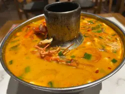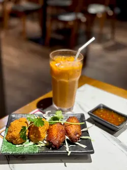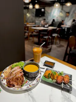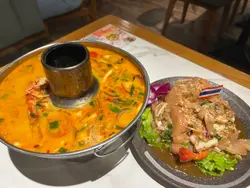 泰味泰國餐廳 位於工業大廈內,不是朋友推薦都沒有發現。餐廳裝潢滿滿的泰式元素,像是竹編的燈罩、泰式圖騰之類的裝飾。這裡的上餐速度偏慢,如果肚子非常餓,建議先有心理準備。✨泰滷拼 (HKD 59/細)一次吃到滷蛋、鴨腎、豬紅和豬手,滷得頗入味。滷汁的味道是偏甜帶鹹,可配搭泰式辣醬來吃。🍝泰式蛋包鮮蝦金邊粉 (HKD 92) 金邊粉炒得幾乾爽不會很黏口,調味則是偏甜那種。當中有蛋絲、鮮蝦、豆腐乾、豆芽等,味道不會太重口味。🍝泰式濕粉河 (HKD 92)醬汁份量充足,讓河粉的口感更偏滑嫩感。配料包括雞肉、芥蘭、椰菜、花椰菜及蘿蔔等,食材也很豐富。🦐泰式虎蝦粉絲煲 (HKD 148)上桌時熱氣十足,是屬於口味偏重的一道菜吸滿醬汁的粉絲相當惹味,虎蝦的肉質也很結實美味。配料的洋蔥、蔥段及蔬菜等都是沾滿了醬汁,味道很濃厚。飲品點了兩杯,兩款都算是用來解膩的不錯選擇。🥭芒果沙冰 (HKD 48) & 泰式凍奶茶 (HKD 20)最後還送甜品給我們,當作餐後小點剛好的椰青糕。…Read More