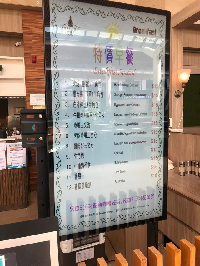 我成日周圍食嘢,第一次到泰國廚子堂食,我要求的服務態度不高,大家打份工,互相尊重基本禮貌可以了,但能夠令我寫食評服務態度一定令我反感,我先至寫,1)環境幾大幾舒適 2)食物及飲品基本野,一般,不會驚喜但也不太失望,可以接受 3)服務態度差,好差,除了帶眼鏡女士好小小,其他冇帶眼鏡束馬尾及小小胖的女士,態度差得4)餐牌有一頁主打牛角包,平日不是星期六日假期,冇魚柳冇牛角包查看更多