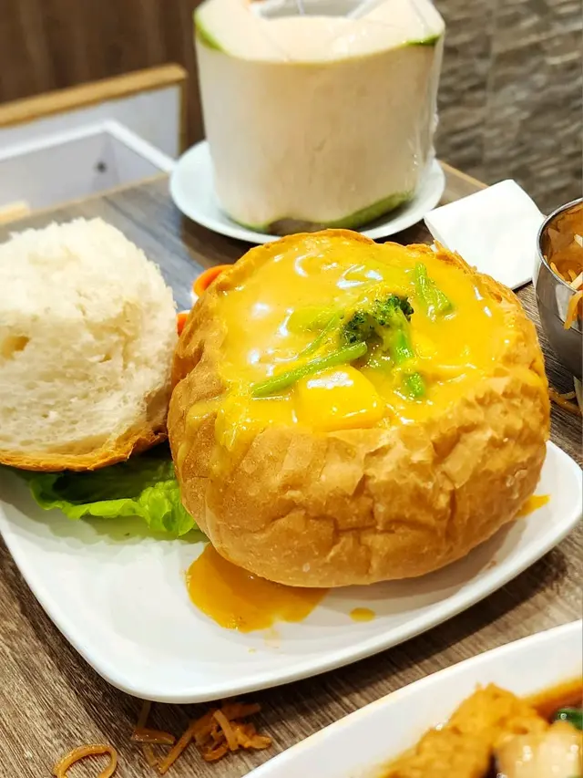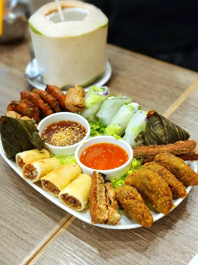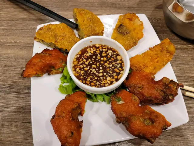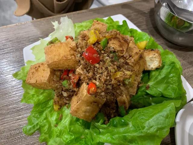 炸蝦餅:裏面係芋頭同粟米,原本仲以為係植物肉添,所以有啲驚喜,點埋甜酸醬我覺得幾好食喎,不過朋友唔鍾意食芋頭就覺得麻麻哋 。